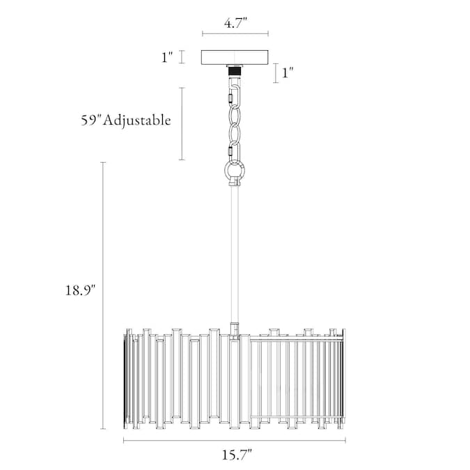 - Drum chandelier dimensions: 15.7-in W x 18.9-in H(measured without the chain), canopy size: 4.7-in D