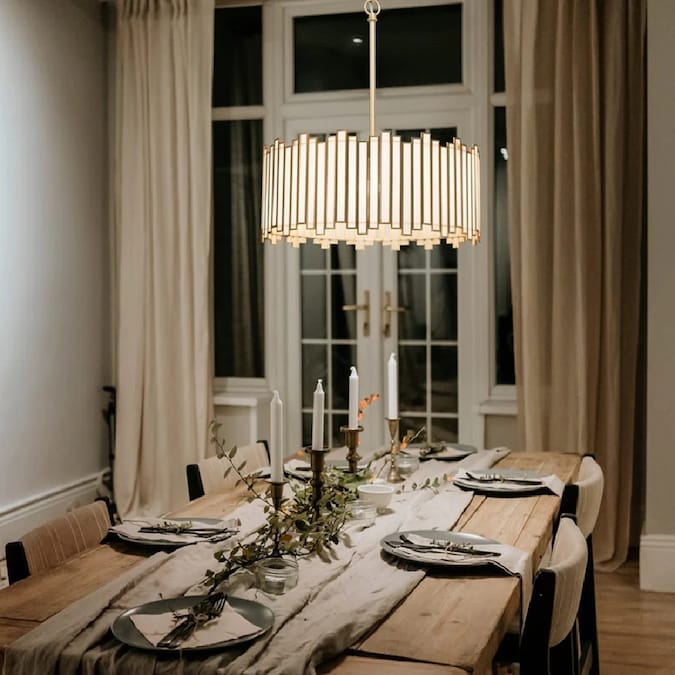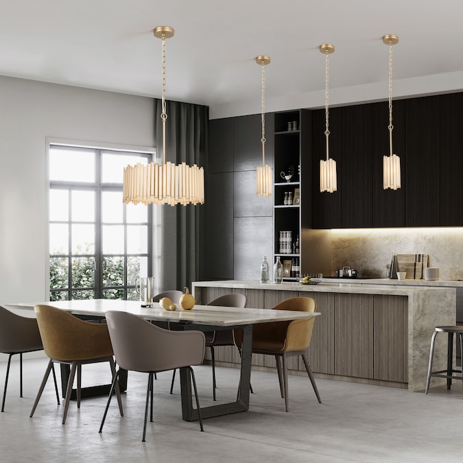 This Hemaaolay collection from LNC offers a wide variety of lighting fixtures with interlaced golden white Hemaaolay pieces in drum lantern shapes forming a circular shade. All are designed to cast understated luxury and sophisticated modern charm to put in modern, transitional, and farmhouse-style home decor and spaces. Compared with traditional glass chandeliers, this exquisite handcrafted modern gold chandelier has been upgraded to be more artistic and functional. Features modern glass tubes with a glam vibe and durable metal with a matte gold finish to shine, this elegant chandelier for kitchen is also perfect for dining room, bedroom, and foyer. This top-rated chandelier’s four lights deliver abundant illumination with LED bulbs, ensuring any space is beautifully and effectively lit. More for Hemaaolay collection: Search for 1-light gold mini pendant lighting Item #3799787 to find your perfect match!