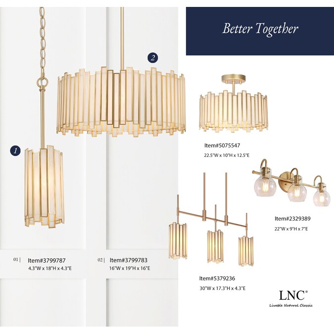 - Coordinate with 1-light gold mini pendant lighting from the LNC Hemaaolay collection to create a stunning and echoing look(Item #3799787)