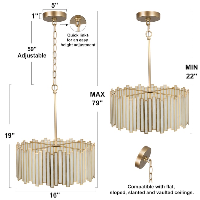 - Drum chandelier fixture dimensions: 16-in W x 19-in H(measured without the chain)