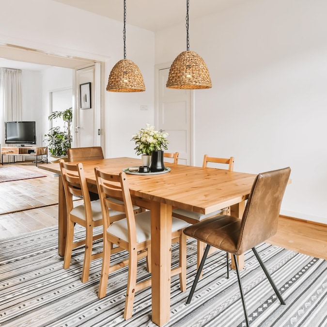 - Hang 1-2 pieces over your kitchen island or round casual dining table to create a unique look