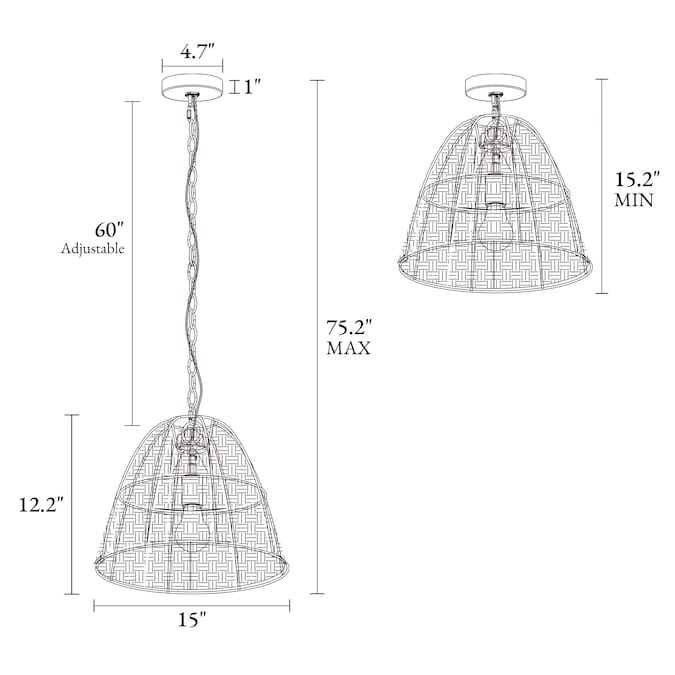 - Fully adjustable 60-in hanging chain, ideal for rooms with high or low ceilings