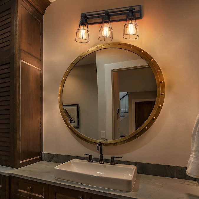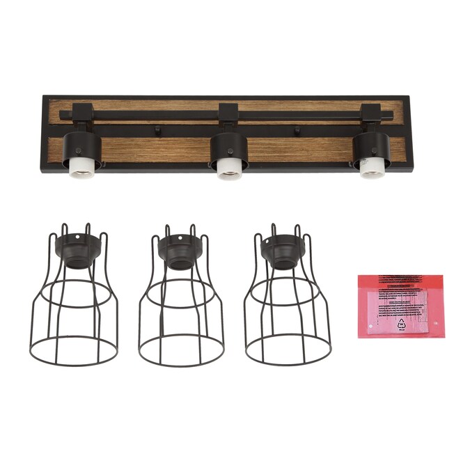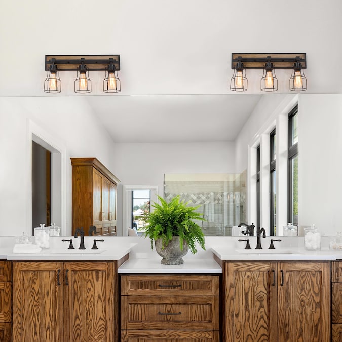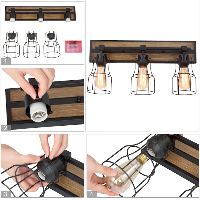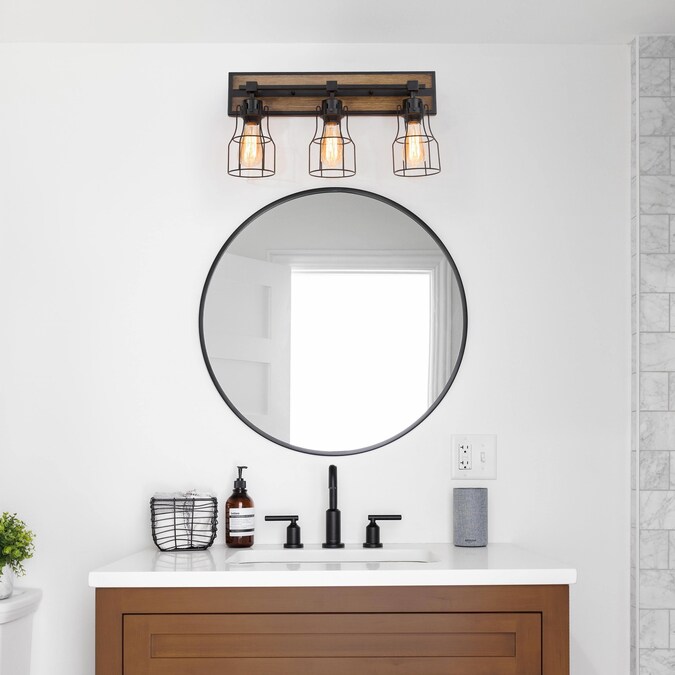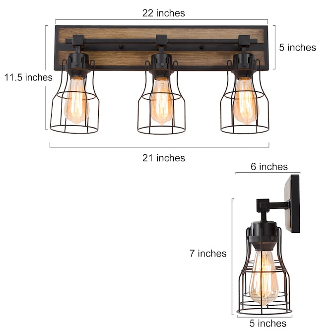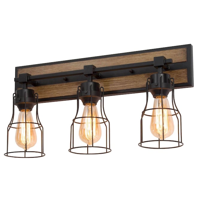 The LNC Kennild collection offers a wide variety of lighting fixtures with an attractive cage design and a combination of premium wood tone and metal elements. This 3-light wood brown and black farmhouse light fixture serious has a more ornate and classic look. Its details and embellishments work with various styles, including a modern farmhouse, vintage and rustic. All are deemed to cast industrial and farmhouse charm and are ideal for putting in your bathroom, dressing room, living room, bedroom, kitchen, dining room, foyers and entrance.