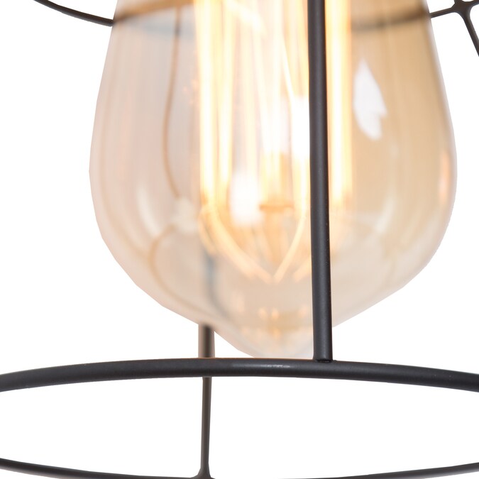 • Features three hollow black cage shades and sturdy metal frame in hand painted matte black and faux pine wood grain finish