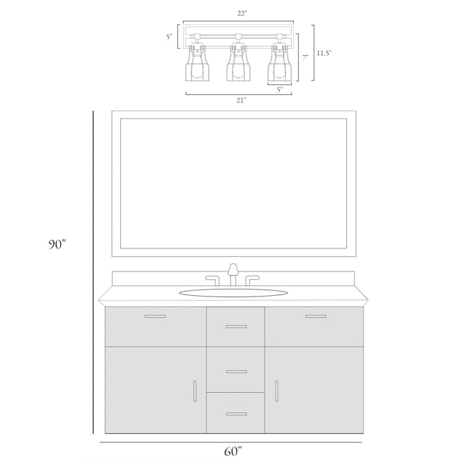 • Fixture dimensions: 22-in W x 6-in D x 11.5-in H, backplate: 22-in W x 5-in H