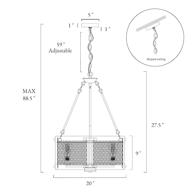 - Cage chandelier dimensions: 19 inches wide, 28 inches tall(measured without the chain)
