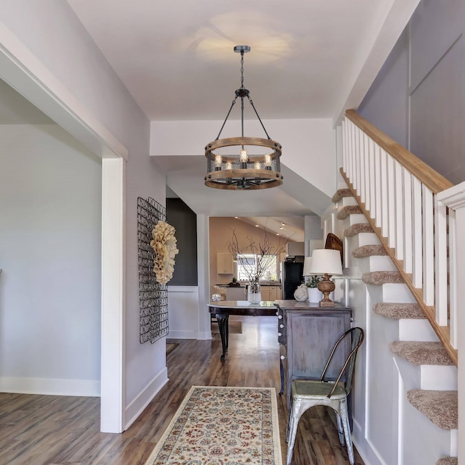 - Features real natural wood and metal with matte black finish to match your wooden furnitures, perfect modern farmhouse chandelier for dining room, kitchen, island, foyer, bedroom