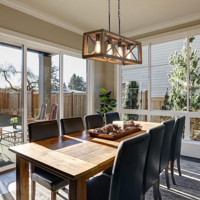 - Great wood dining room chandelier is designed to work on flat, sloped and slanted ceilings
