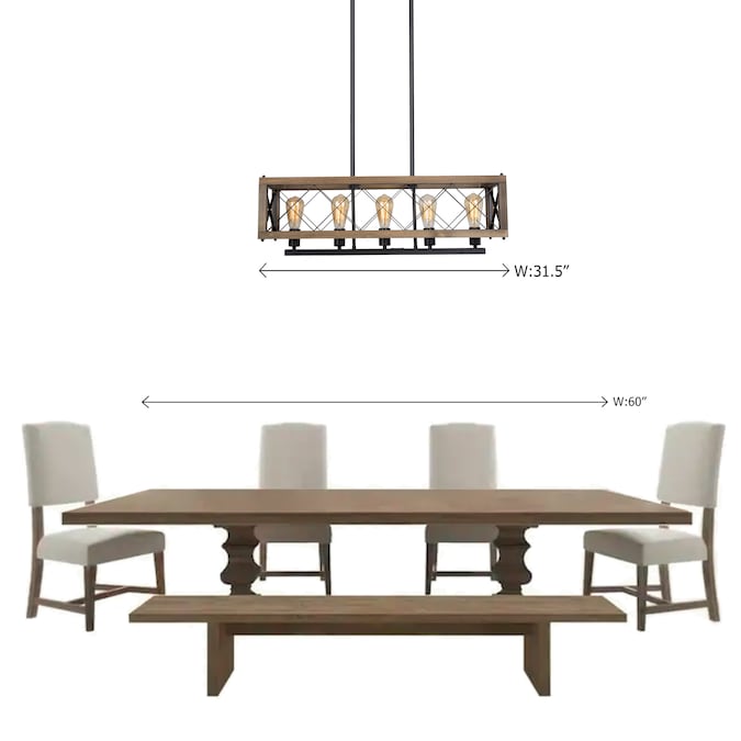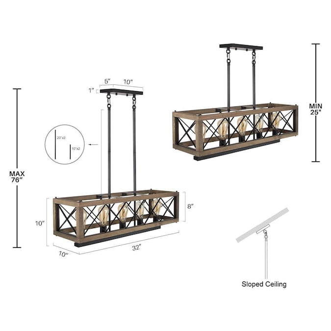 - LNC rectangle linear wood dining table lighting mounts to flat or sloped ceilings with adjusting down rod up to 60-in