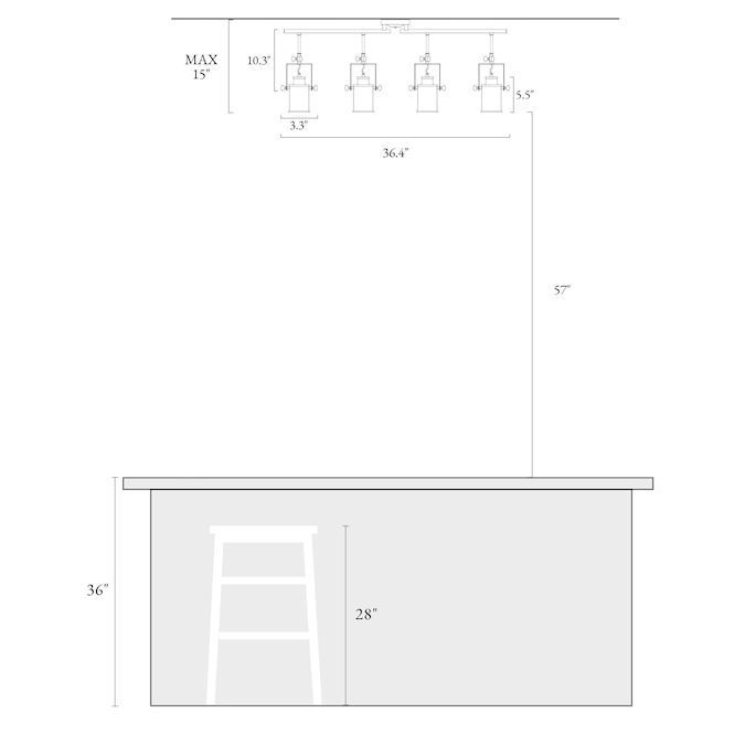 - Modern track lighting dimensions: 10.3-in height x36.4-in width