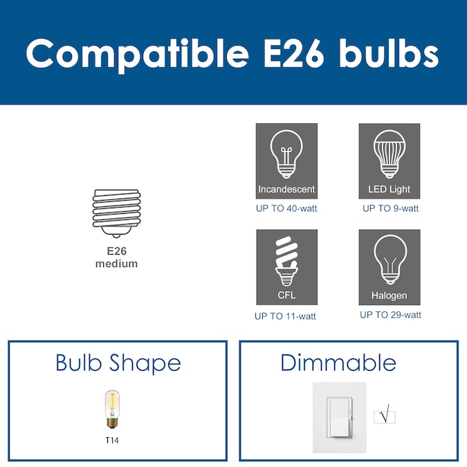 - Light Bulb Base Type: Medium base (E-26)