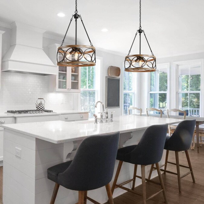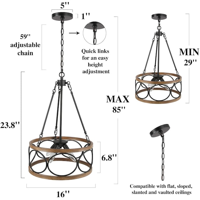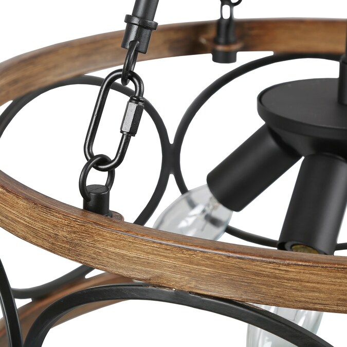 - Features matte black finish and drum shade with faux wood tone, perfect farmhouse chandelier lighting for dining room, foyer, kitchen, living room