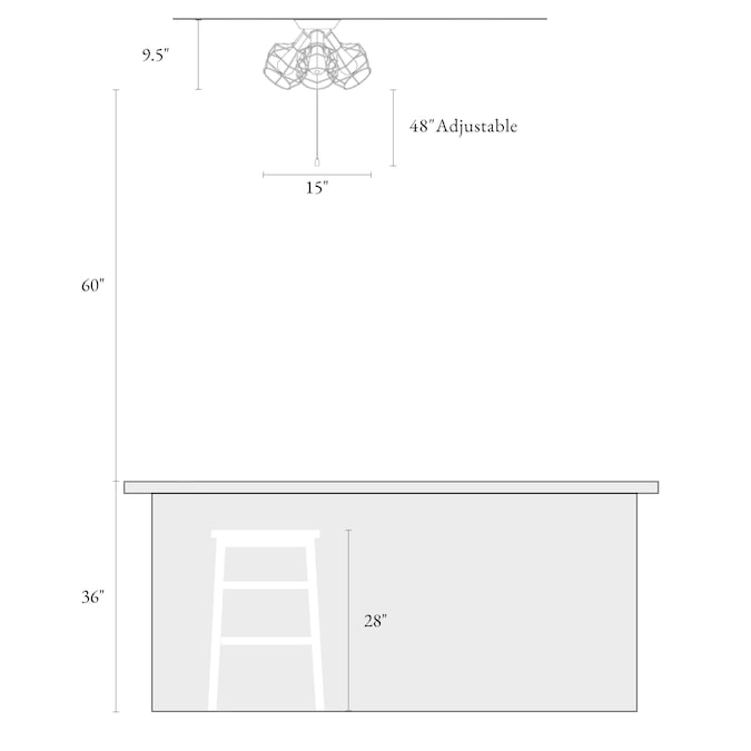 • Fixture dimensions: 15-in W x 13.5-in D x 9.5-in H, canopy size: 6 inches