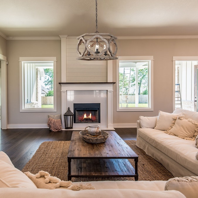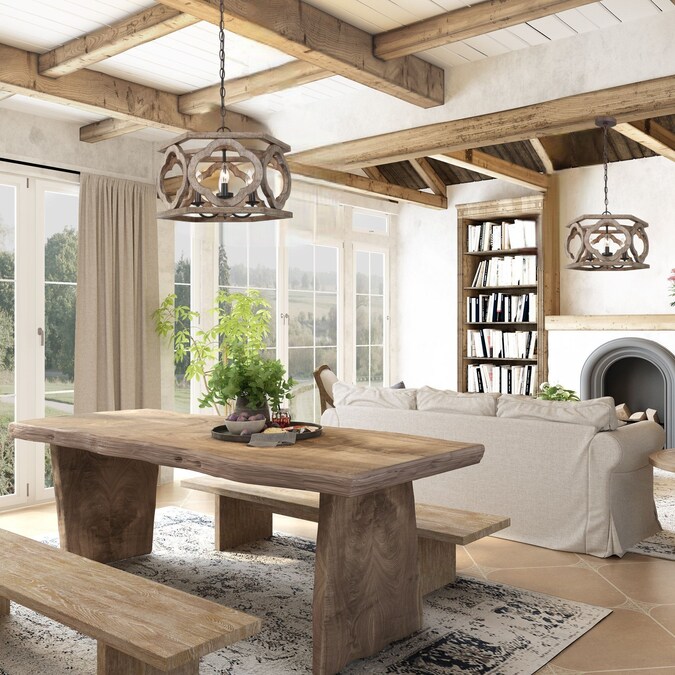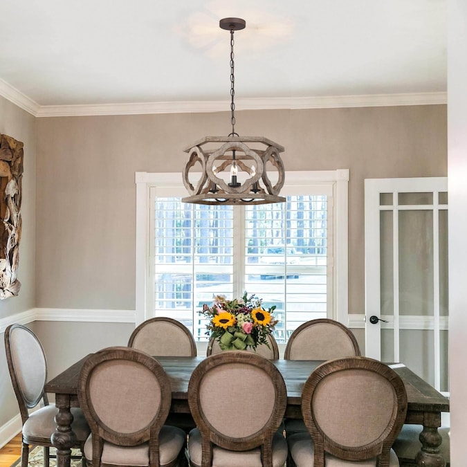 - Farmhouse wood chandelier features an exquisite handcrafted drum-shaped hollow wood frame, 6 curved wooden circles are the characteristic of this fixture, very farmhouse and special