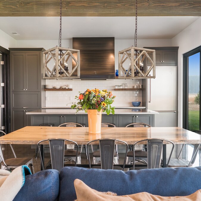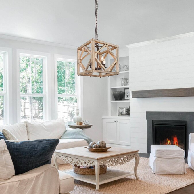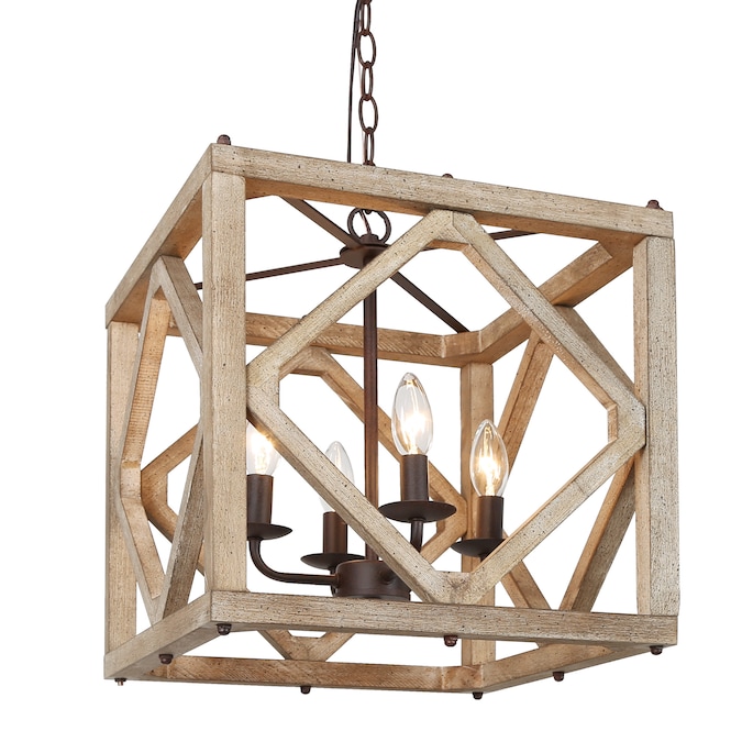 Adding natural charm with the LNC Quaint 4-light square hanging pendant light. This eye-catching handcrafts wooden kitchen island light fixture with a hollow square antique white-washed wood frame, 4 candle holder lights, and rustic bronze finish, full of artistic and minimalist design can highlight your rooms, presenting a classic yet modern farmhouse aesthetics, casting a soft beaming glamour for your dining rooms, bedroom, kitchen, living room, entryway and foyer.