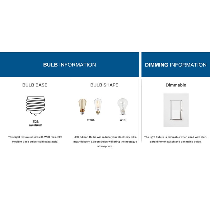 - Requires 5 x E26 Base, type ST64 or A19, max 60-watt incandescent bulbs or up to 12W LED bulbs(Not Included)