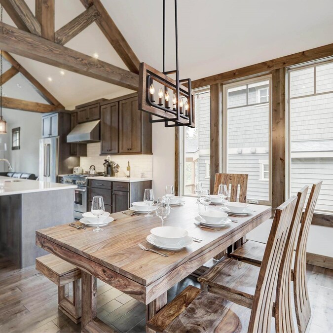 - This dining room pendant light is finished in brown wood grain tone and matte black, versatile to fit in your place to add much-understated farmhouse retro-sophistication
