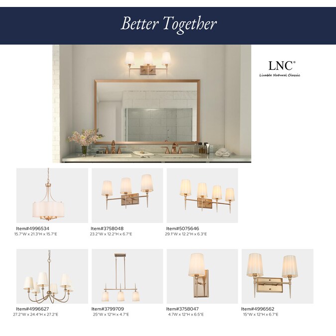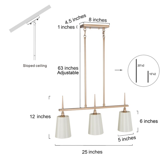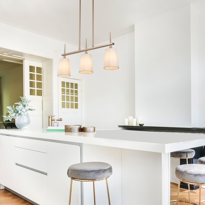 - This gold kitchen island pendant dimensions: 24-in W x 4.7-in D x 12.2-in H