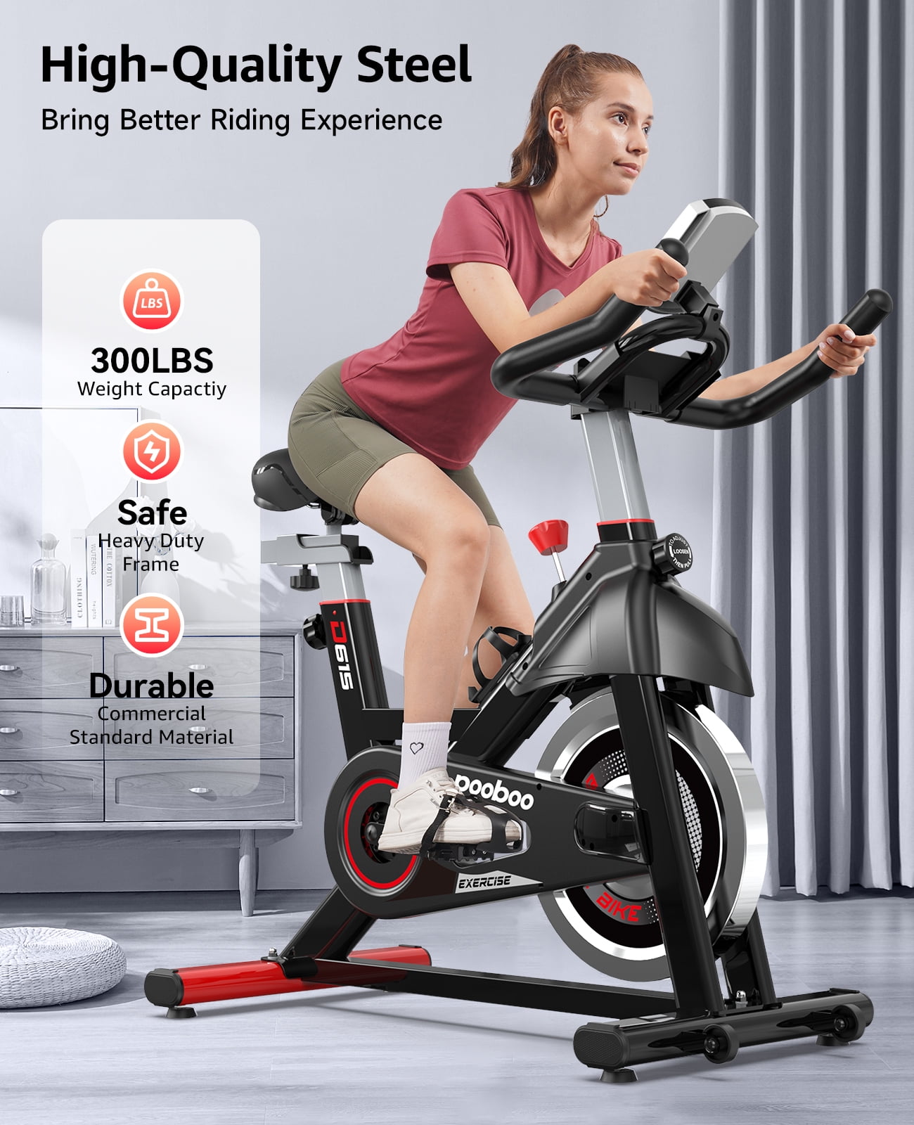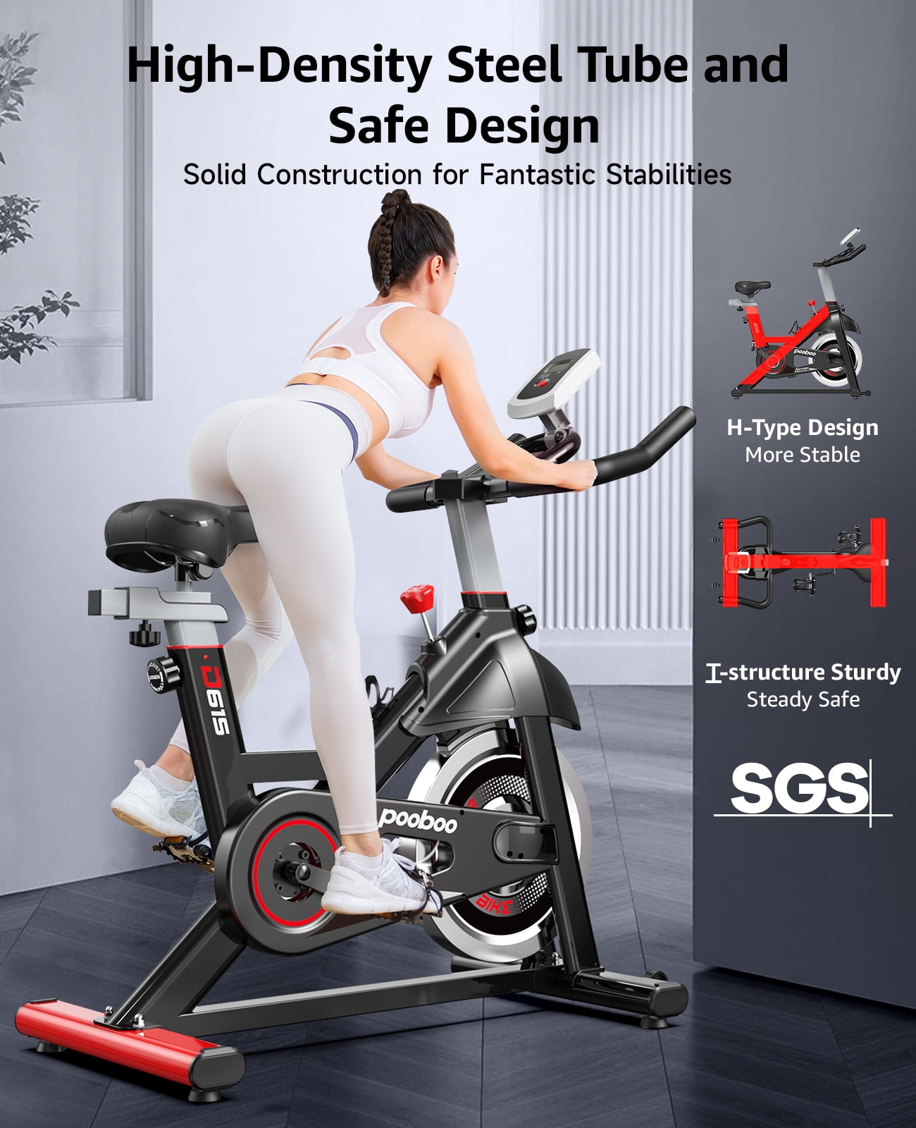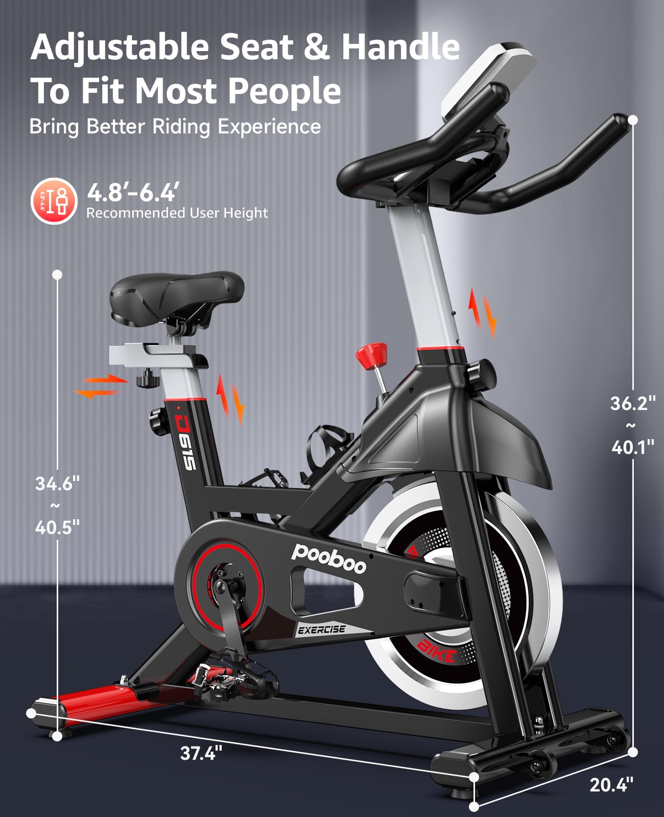【2025 New Version & Free Bluetooth Device】According to customer’s response, our exercise bike had been updated the whole accessories, big sales price with high quality, it worth to have! If you need the bluetooth device, pls contact us from the customer email address or customer message, we will reply within 24 hours. 【High-Quality Indoor Cycling Exercise Bikes】According to the statistics that white heavy-duty steel frame of the exercise bike more preservative than black frame.The belt driven system provides a smoother and quieter ride than chain transport. It won’t disturb neighbors or sleeping kids.Double Triangular Structure smoother and stabler. Maxium Weight: 350lb 【Upgrade Adjustable Seat and Handlebar 】The cardio workout indoor cycle exercise bicycles has lengthened armrests and seat risers can meet the height needs of most people and cycling postures. Turnning resistance knob to adjust your cardio workout level freely.large range of resistance give users a comfortable indoor riding experience. Workout your muscles / lose weight / enhance heart /lung function. 【Safe to cycle】Adjustable pedal straps fits different size feet and keep your feet from slipping off. Pls note: left pedal tightens on counterclockwise, and right pedal tightens on clockwise. Easy to move around with two front transportation wheels. A bottle holder for you to replenish water in time.All parts are protected and your little baby can’t reach them. 【LCD Monitor & Gift iPad Holder】Track your riding time, speed, distance, calories you burned and riding odometers. The Ipad holder makes you enjoy exercising fitness class or movie at the same time, making it easier to keep exercising for long time. 【Personalized Fit Exercise Bike】Best choice for you and gifts,meets the needs of beginners to professionals 【Warranty&Customer Service】ONE YEAR FREE parts replacement. Online instruction video can help you complete the assembly within 30 minutes,any problems will be reply within 24 hours, 100% satisfied customer service.