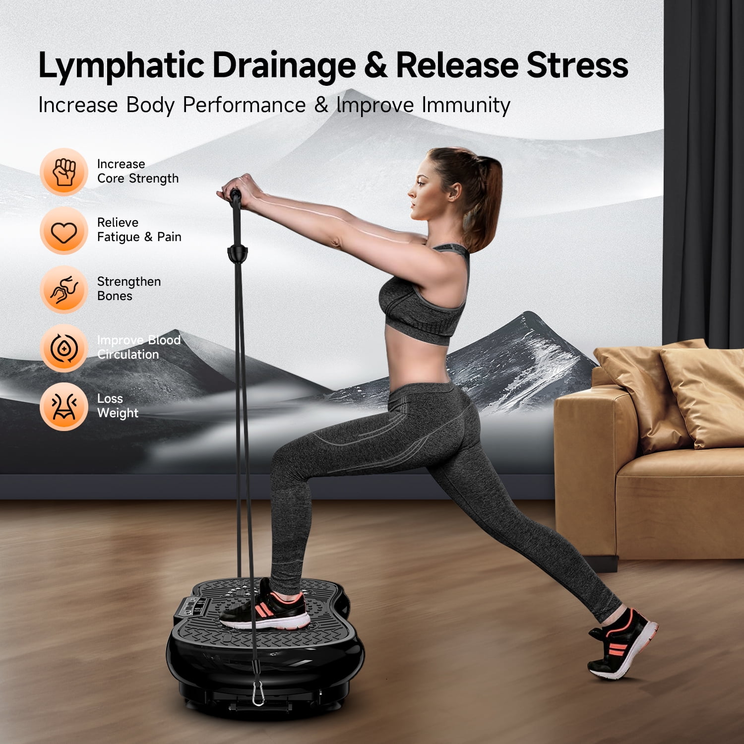LNOW Vibration Plate Exercise Machine, Lymphatic Drainage Machine, Whole Body Workout Vibration Platform w/ 2 Resistance Bands for Wellness and Fitness-Black