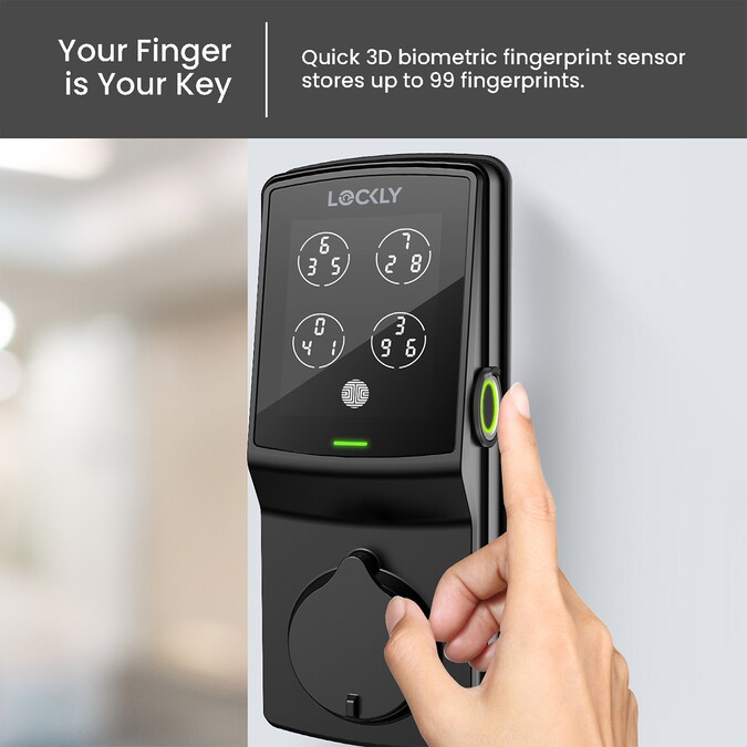 - AI BIOMETRIC FINGERPRINT: Your finger is your key—instant fingerprint recognition in 0.3s and unlocking in 0.5s, improving speed and accuracy with every touch; can store up to 99 fingerprints; trusted by the Lockly community with 100M+ access granted.