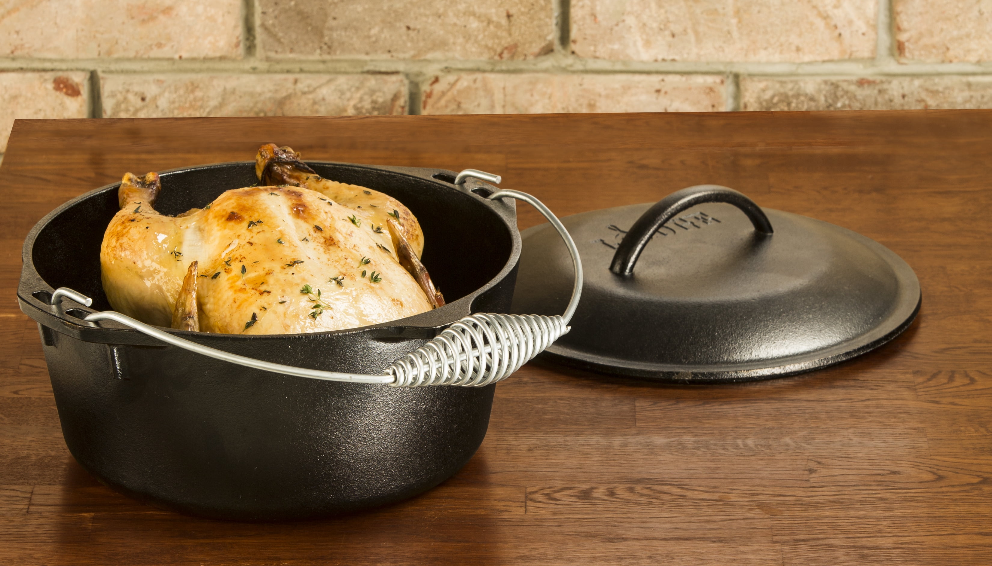 Lodge 7 Quart Cast Iron Dutch Oven With Iron Cover L10DO3 Cast iron has superior heat distribution and retention Brutally touch for decades of cooking Great for cooking at home in the oven, on the stove, on the grill or over a campfire Great for induction cooktops The right tool to make your favorite recipes and favorite foods. Makes a great gift To Clean: hand wash, dry, rub with cooking oil
