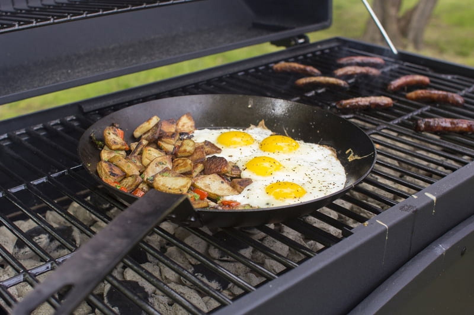 he Lodge Seasoned 12 Inch Carbon Steel Skillet is crafted with a lightweight design and easy-release finish that can take the heat. Whether you are searing steaks on the stove, griddling breakfast on your grill, or sizzling your catch over the fire, carbon steel can handle any cooking adventure. Use it to sauté, sear, bake, broil, braise, fry, or grill—this skillet loves to multitask. Lodge carbon steel is built to last for generations, so you can serve memories at every meal, year after year. The Lodge 12 Inch Carbon Steel Skillet is seasoned, ready to use, and easy to care for. Since 1896, Lodge Cast Iron has been making heirloom-quality skillets, pans, dutch ovens, bakeware, and grilling gear, bringing professional chefs, home-cooks, and outdoors folk everything they need to make incredible meals. Our cast iron and carbon steel pieces are made in Tennessee, and we’re proud to be a family-owned company with a strong commitment to quality, values, and integrity. As the original cast iron manufacturer, we proudly set the standard in cookware that can go anywhere and do anything.