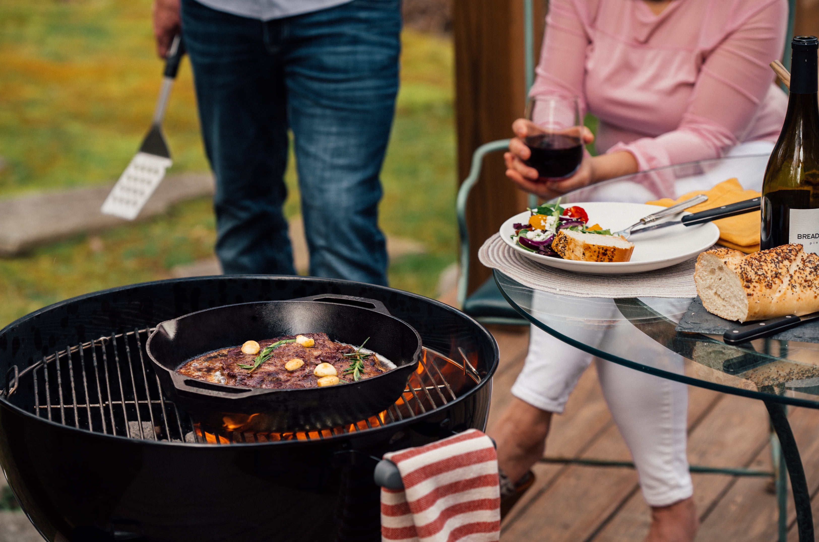 17 inch cast iron dual handle pan Nonstick surface seasoned with 100% natural vegetable oil Safe for use in the oven, on the stove, on the grill, or over a campfire Great for high-heat cooking and searing Easy to clean: just hand-wash, dry, and rub with oil Made of all natural ingredients Cookware that stays in the family and out of the landfill Use it to sauté, sear, bake, broil, braise, fry, or grill—this skillet loves to multitask. We are a family-owned company with a strong commitment to quality, values, and integrity. As the original cast iron manufacturer, we proudly set the standard in cookware that can go anywhere and do anything.