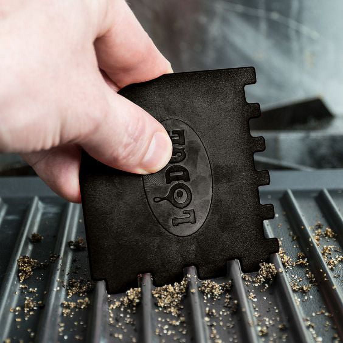 Lodge Logic Essential Skillet Set: Set includes: 10.5″ round griddle 8″ skillet 10.25″ skillet 6″ silicone pot holder Red silicone handle mitt Red pan scraper Black pan scraper Foundry-seasoned and ready to use Sturdy integral oven proof handles Safe for cooking on all surfaces: electric, gas and induction stovetops, oven, fire and grill Cast iron is best for even heating and heat retention Cast iron is an excellent source of nutritional iron Natural healthy cooking Cast iron is economical and durable Makes a great gift Model# L6SPB41 To clean and maintain seasoning: hand wash (add a little soap if you prefer), dry and rub with cooking oil Optional glass lid available for the 10.25″ Lodge Logic skillet (not included model# GL10) Optional cast iron lid available for 8″ skillet (not included model# L5IC3) Optional silicone assist handle available in various colors and protects hands from heat up to 450F (not included model# ASAHH11 is black)
