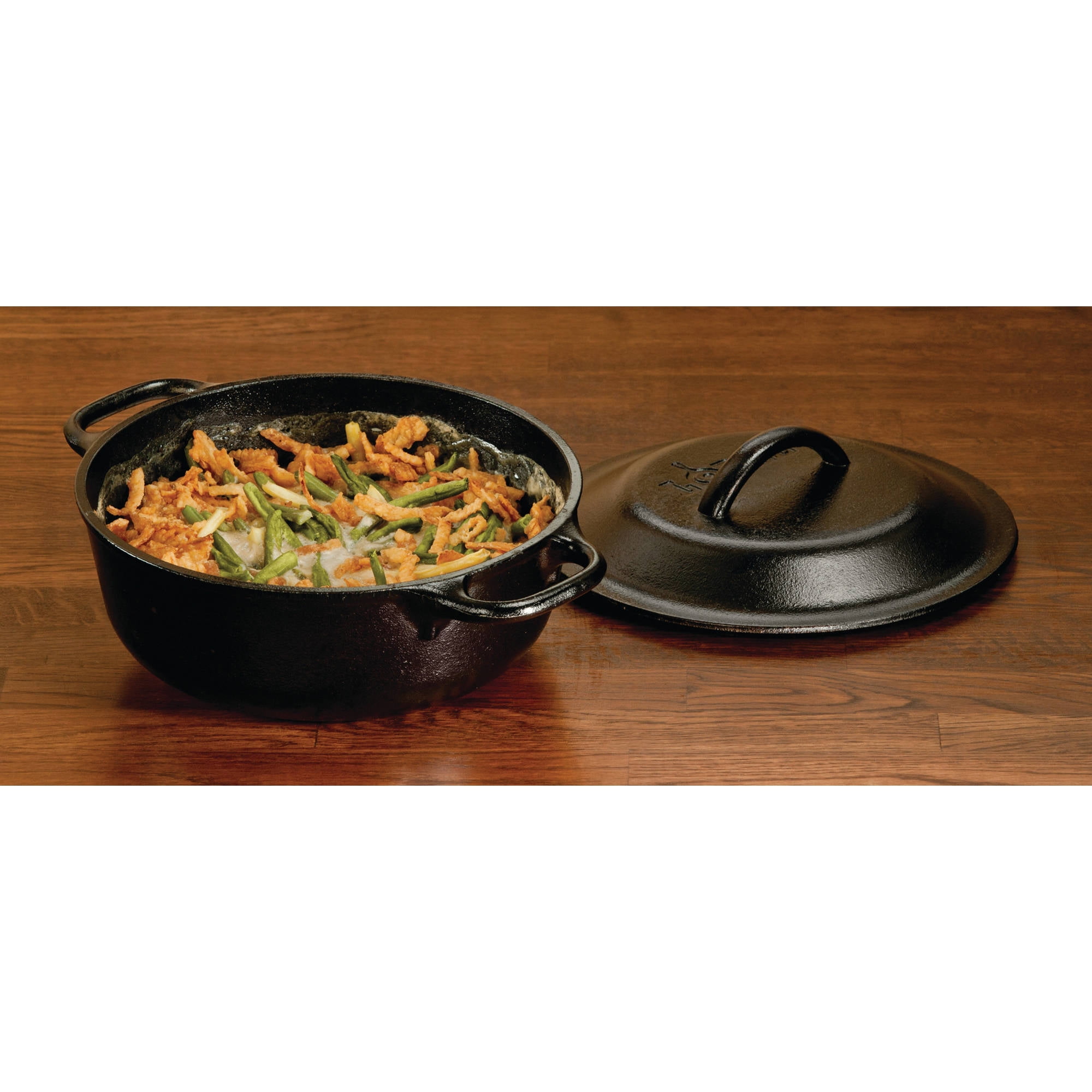 The Lodge Cast Iron 2-Quart Serving Pot is a multi-functional cookware that works wonders with slow-cooking recipes and all your favorite foods. Cook up baked beans, soups and stews. This cookware piece goes from stovetop to tabletop for serving. Cast iron loves a campfire, a stovetop, or an oven, and can slow-cook foods without scorching. It retains heat well so you can sear meat at higher temperatures and will keep your delicious meals warm for a long time. Whether used in a kitchen or camp, theses virtually indestructible cookware should last for generations. Made of cast iron, this pot evenly distributes heat from the bottom through the sidewalls. Sporting a stylish black color, the cast iron cookware looks good in most kitchens and it doubles up as an excellent source of nutritional iron. This pre-seasoned cookware is ready-to-use right out of the box. While the cookware comes pre-seasoned to prevent food from sticking, it works best when sprayed or lightly coated with vegetable oil before use. After cooking, clean with a stiff nylon brush and hot water. Using soap is not recommended, and harsh detergents should never be used. Towel dry immediately and apply a light coating of oil to utensil while it is still warm. Cast Iron, like your grandmother used, still ranks as one of the best cooking utensils ever made. It gives you a nearly non-stick surface, without the possible harmful fumes generated by preheating chemically treated nonstick cookware. The American-based company, Lodge, has been fine-tuning its construction of rugged, cast-iron cookware for more than a century.