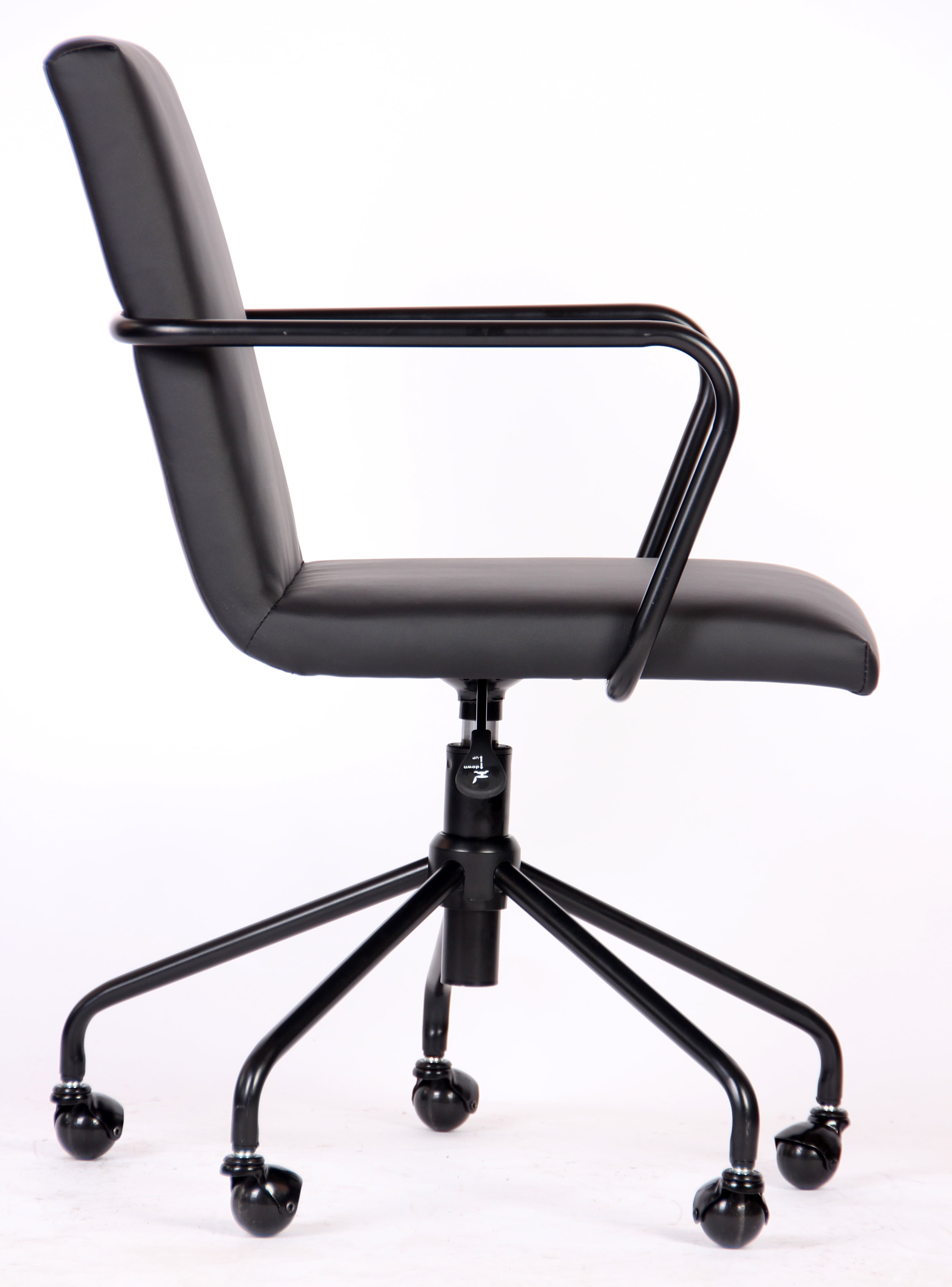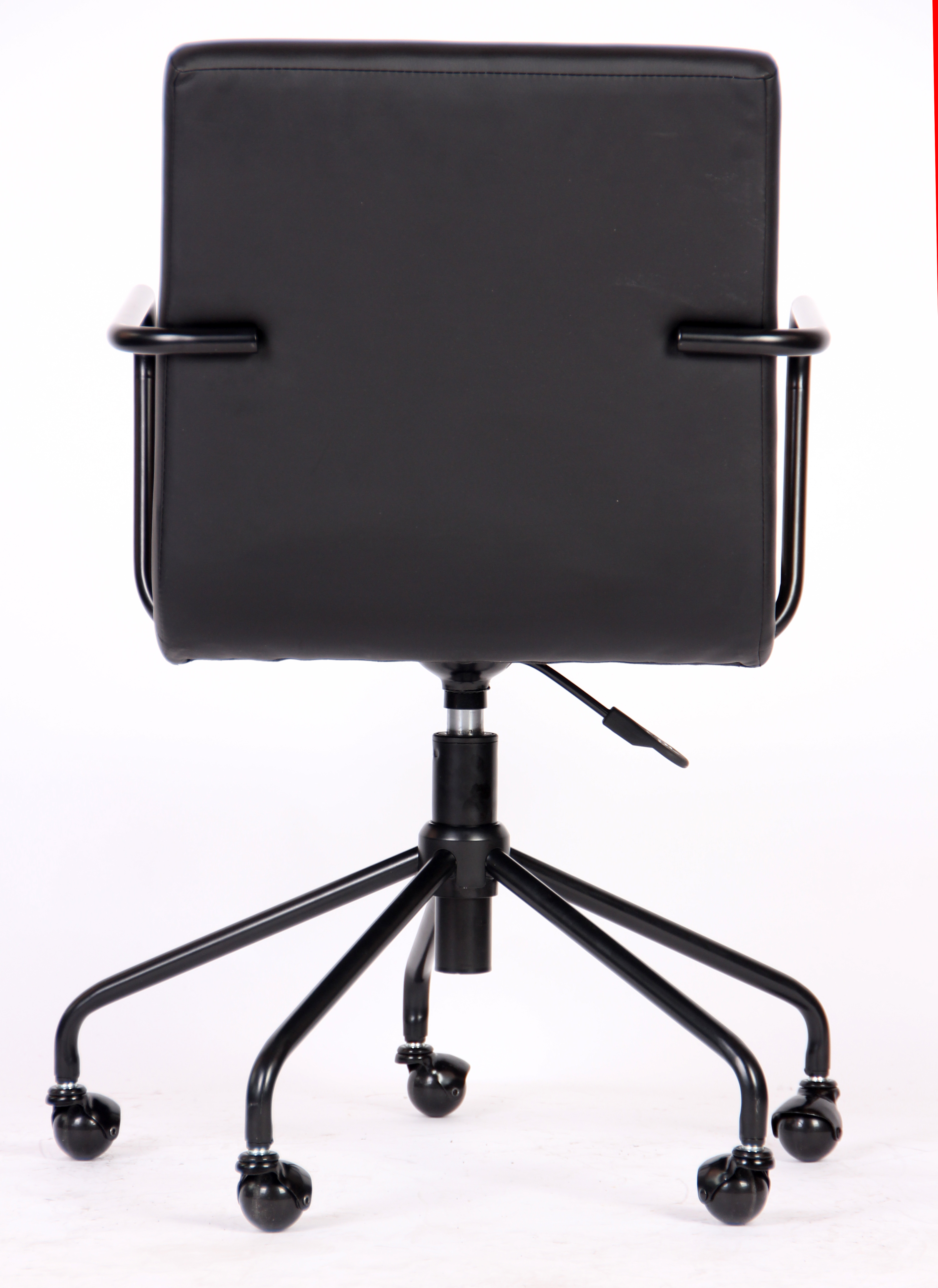 ROLLING DESK CHAIR: Add style and comfort to your home office with this desk chair MODERN DESIGN: Featuring sleek black faux leather and a matte black 5 star base, this desk chair’s modern design will look great in your home office or study room FUNCTIONAL SEAT: Adjustable seat swivels 360 degrees and features plush padding, helping you get your work done faster Easy To Clean Comfortable for long hours of sitting