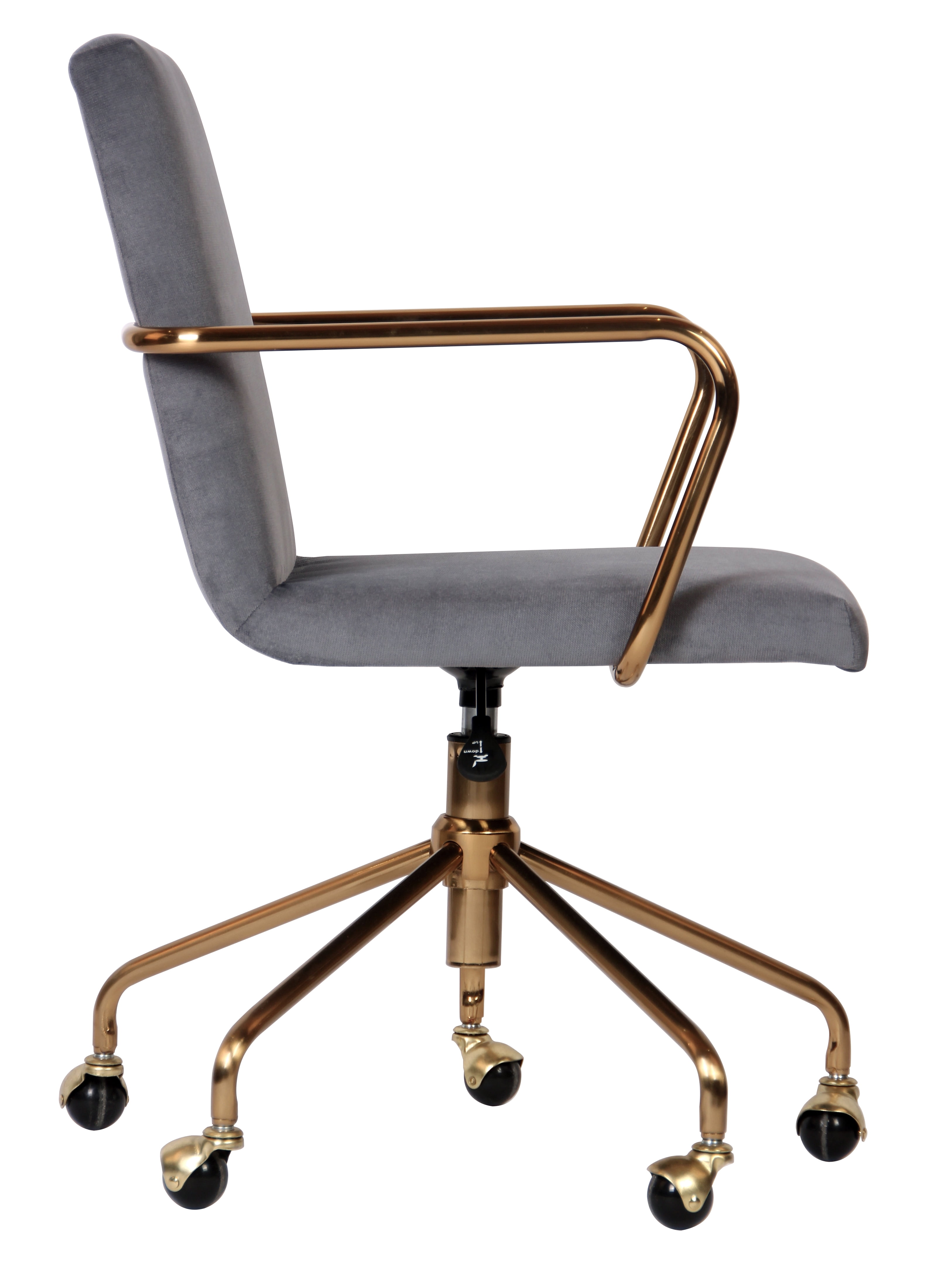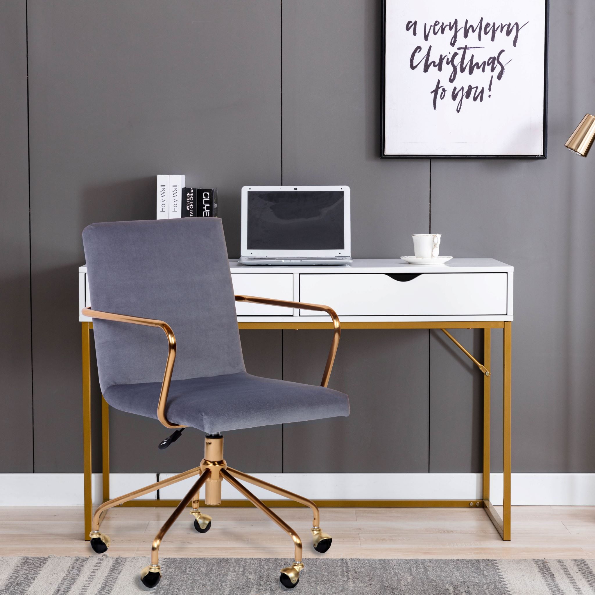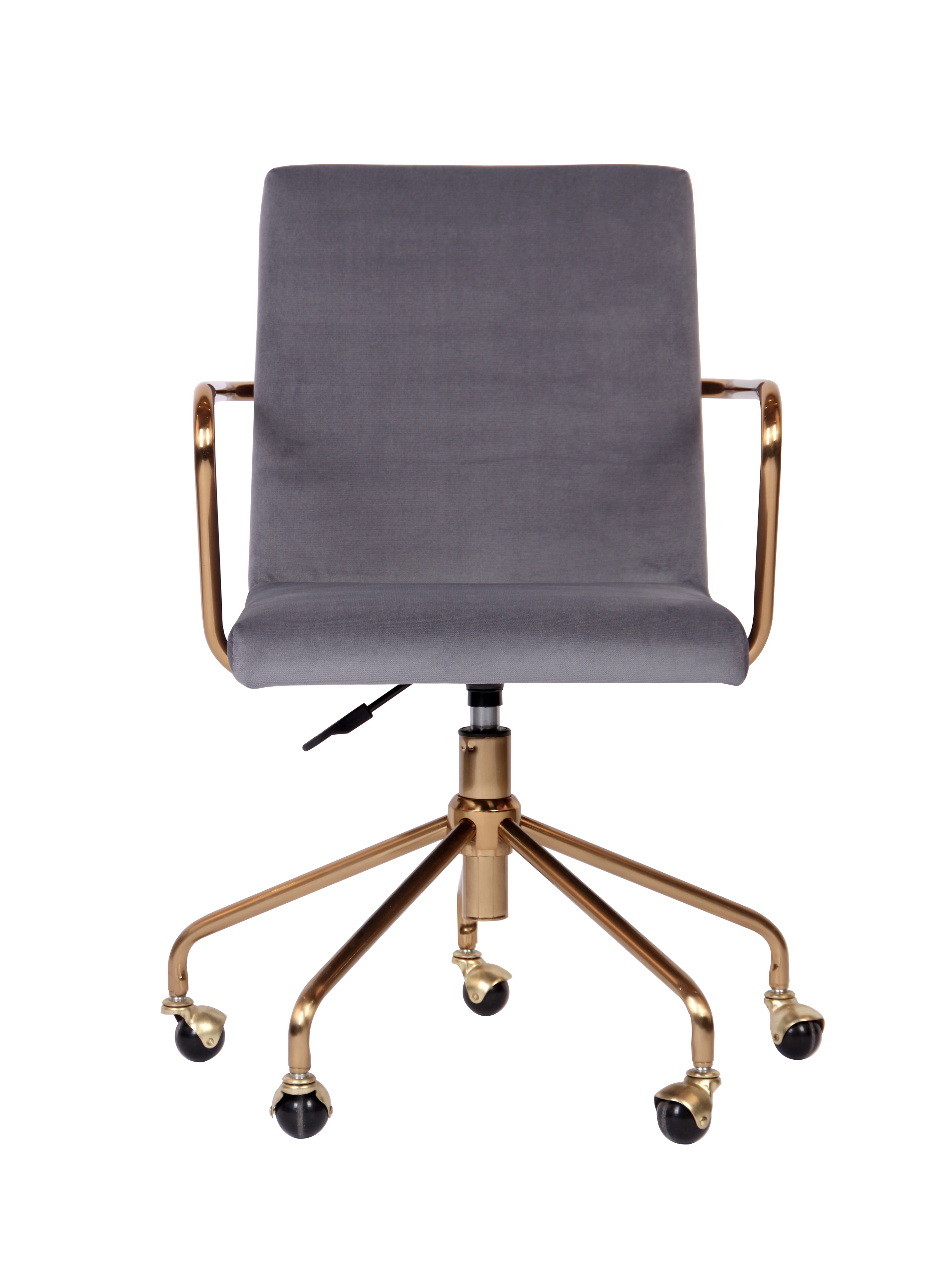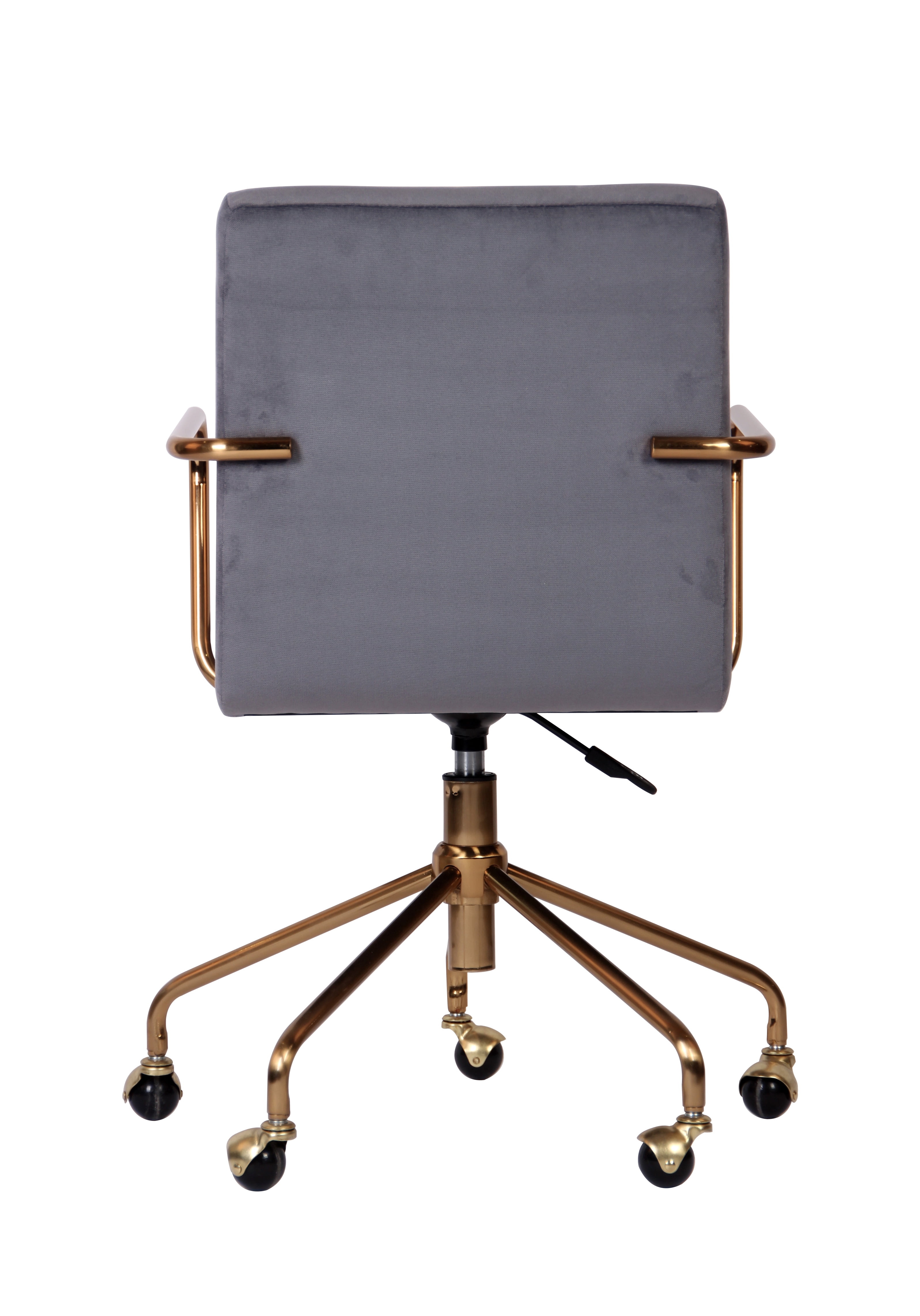 ROLLING DESK CHAIR: Add style and comfort to your home office with this desk chair MODERN DESIGN: Featuring sleek gray velvet and a gold-plated 5 star base, this desk chair’s modern yet glam design will look great in your home office or study room FUNCTIONAL SEAT: Adjustable seat swivels 360 degrees and features plush padding, helping you get your work done faster EASY ASSEMBLY: Office chair is easy to assemble so you can start enjoying this piece right away IDEAL SIZE: Measuring 47.83″ x 16.14″ x 24.8″, this rolling chair is large enough to be comfortable without taking up too much space in your home