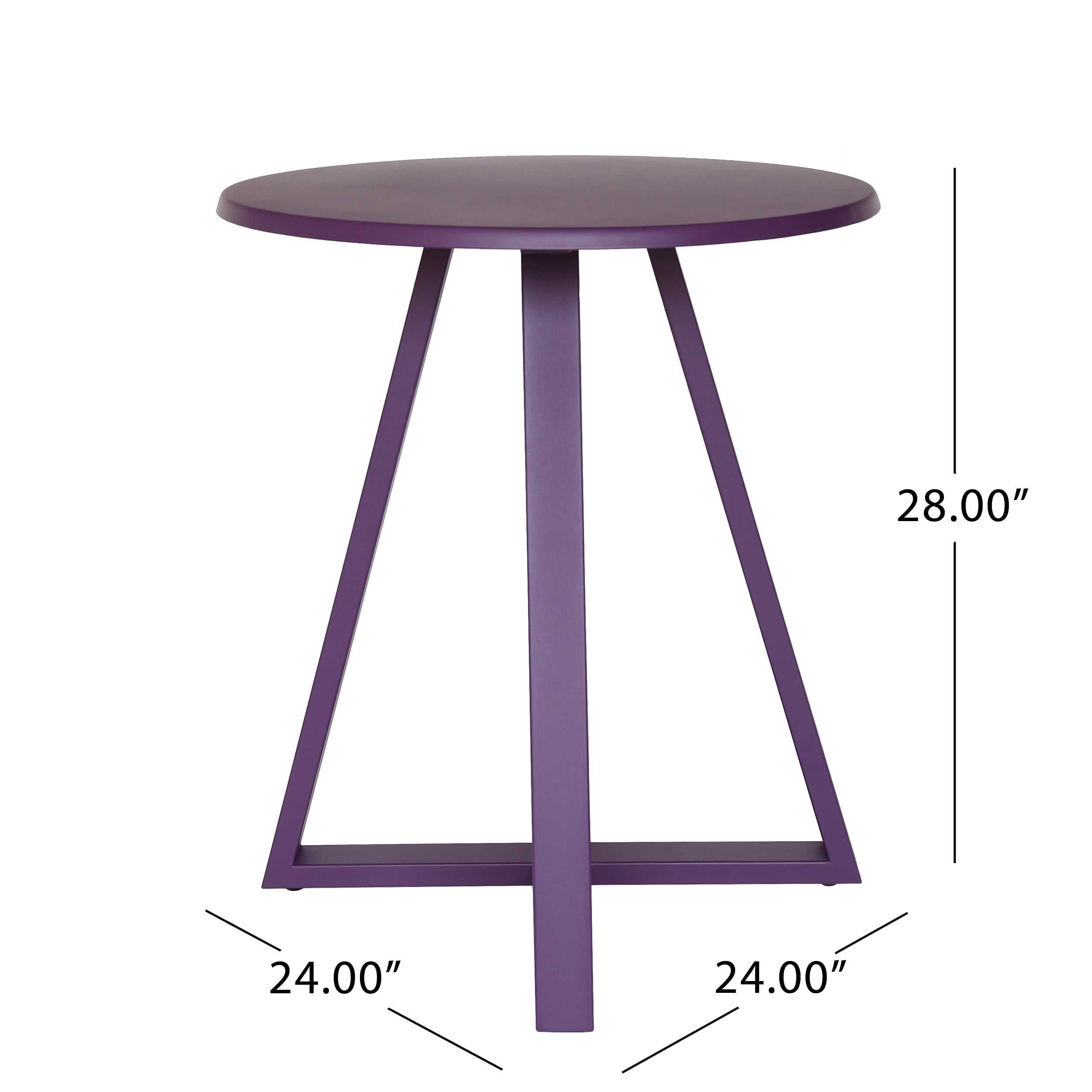 Includes: Two (2) Chairs and One (1) Table Material: Iron Finish: Matte Purple Assembly Required Hand Crafted Details Chair Dimensions: 18.25 inches deep x 19.50 inches wide x 28.75 inches high Table Dimensions: 24.00 inches deep x 24.00 inches wide x 28.00 inches high