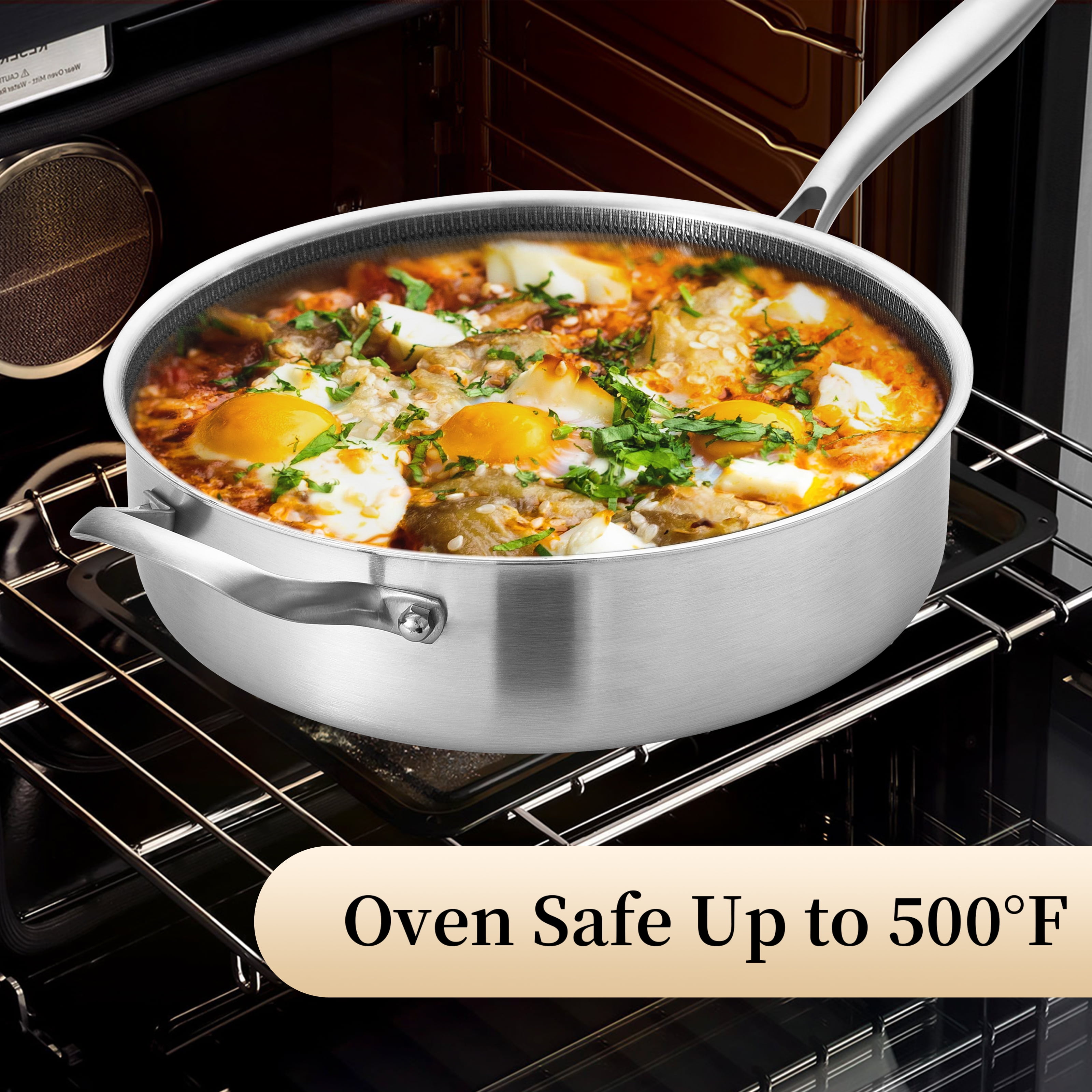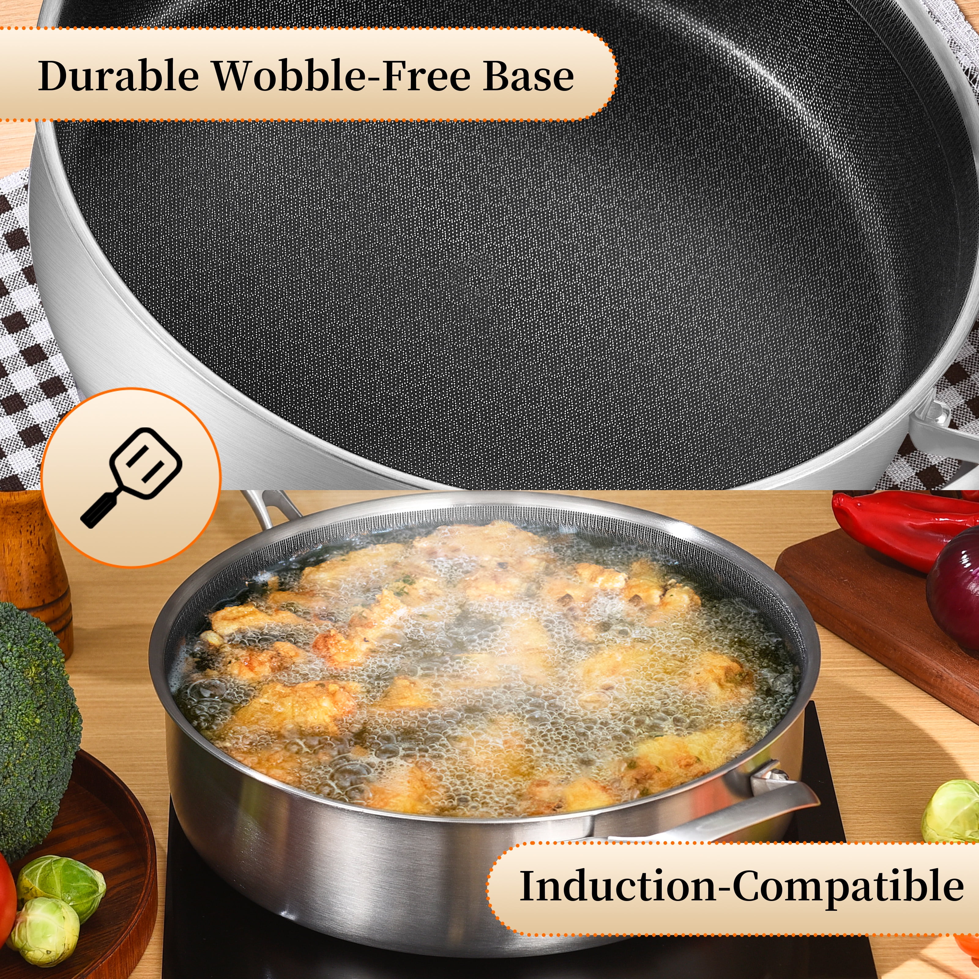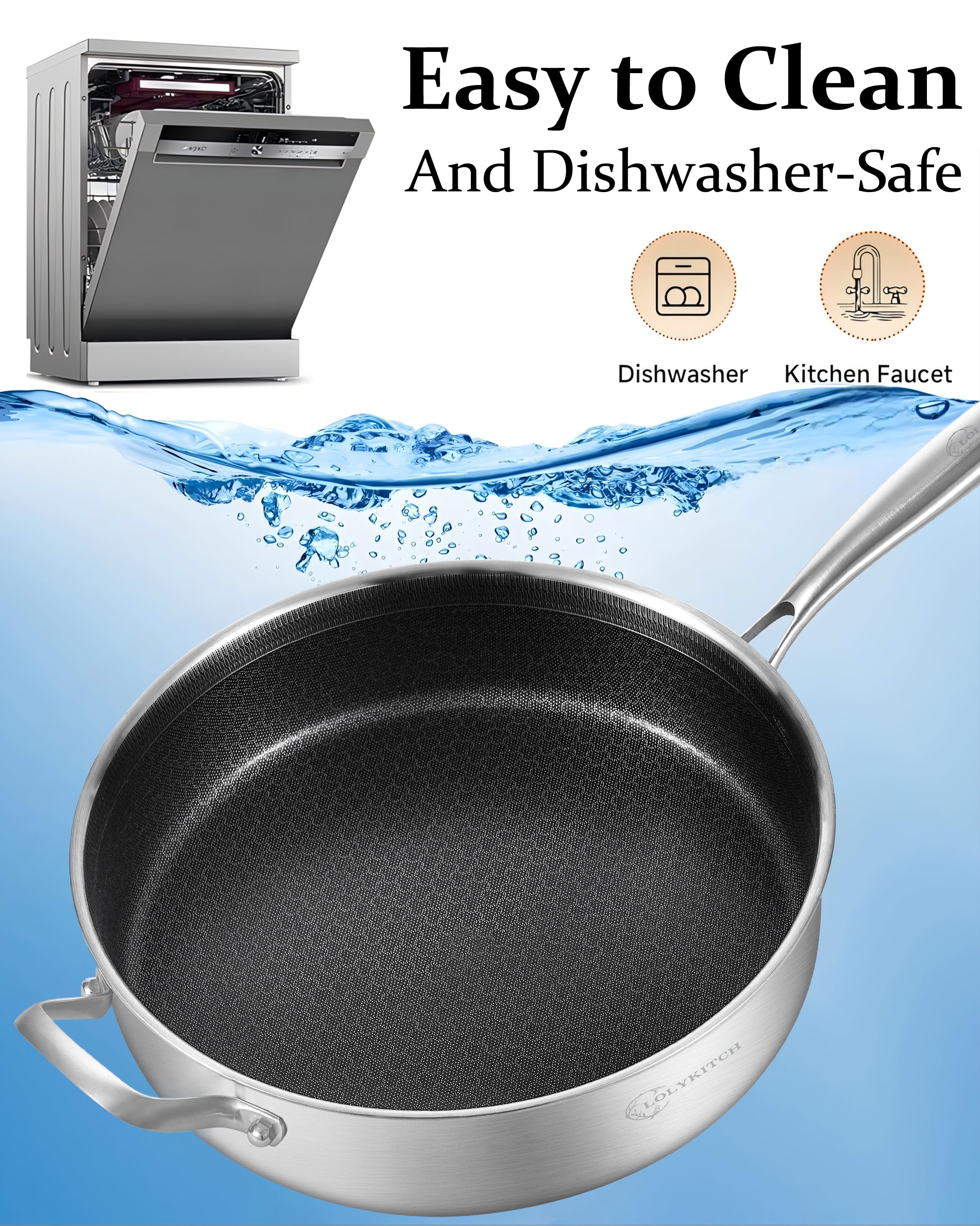 LOLYKITCH Tri-Ply Stainless Steel Non- stick 6 QT Saute Pan with Lid,12 inch Deep Frying Pan,Jumbo Cooker,Dishwasher and Oven Safe,Detachable Handle
