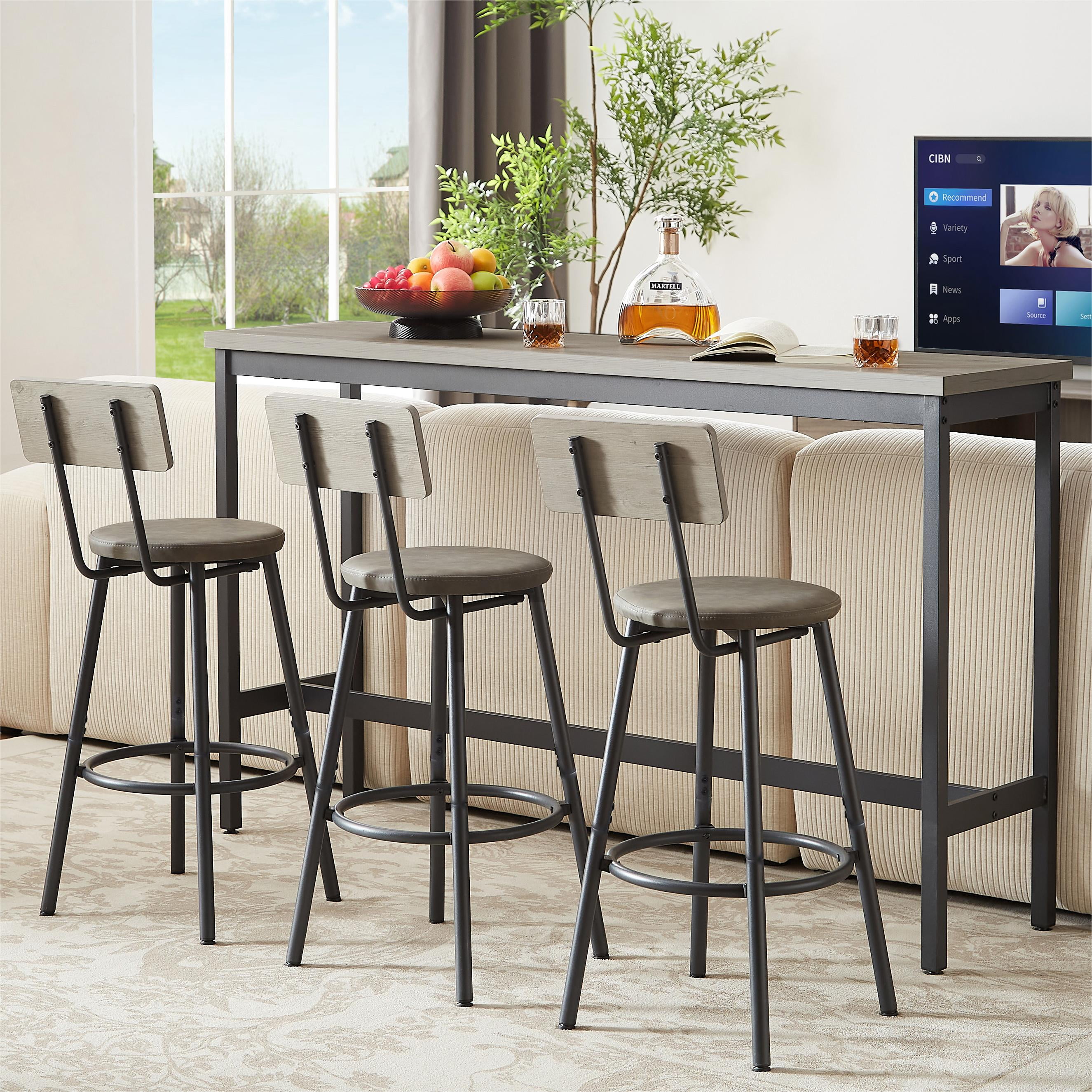 Long Bar Table Set with 3 PU Upholstered Stools, Industrial Bar Chairs for Kitchen Breakfast Table,Living Room,Banquet Hall, Rustic Gray, 63″L x15.7 W x 37.5″ H