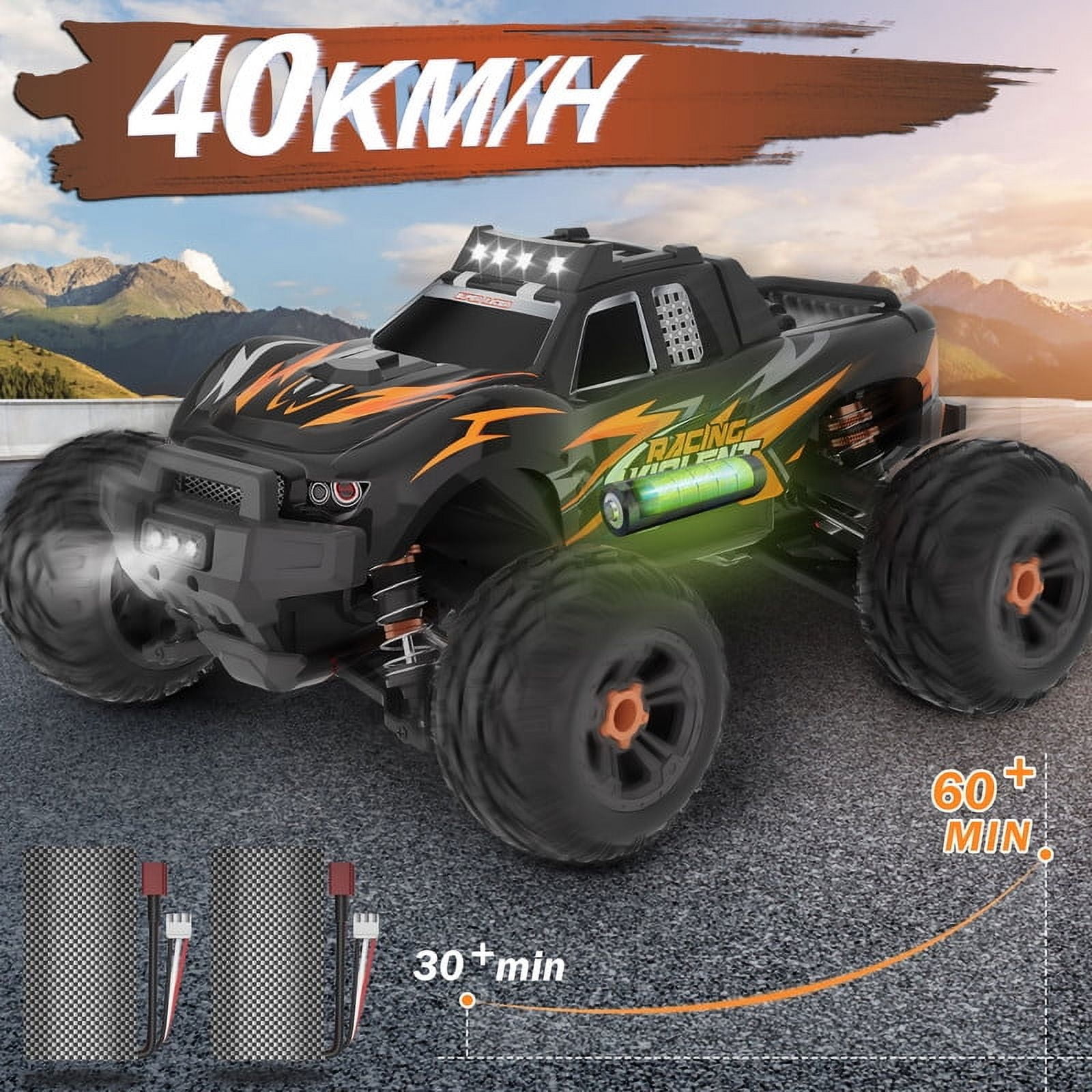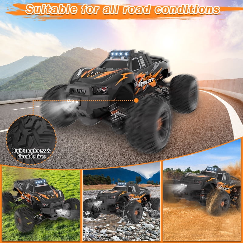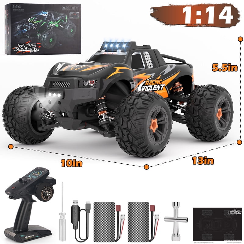 Lookfly Fast RC Cars for Adults 40+KM/H All Terrain High-Speed Remote Control Car,4WD 1:14 Scale RC Truck with 70 Min Runtime, 2 Batteries Gifts Toys for Kids Orange