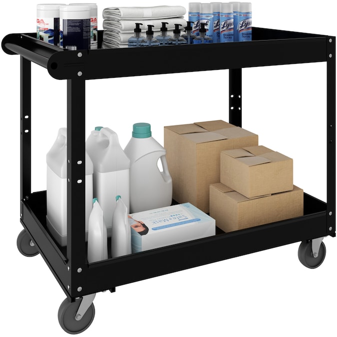 Utility cart features a two-shelf design to offer a convenient worksurface and spacious storage for your supplies. All shelves are surrounded with a raised lip (3-1/4in high) to keep your contents secure during transit. Industrial-strength casters allow you to maneuver with ease so you can transport your items from room to room. Durable steel construction supports up to 400 lb.