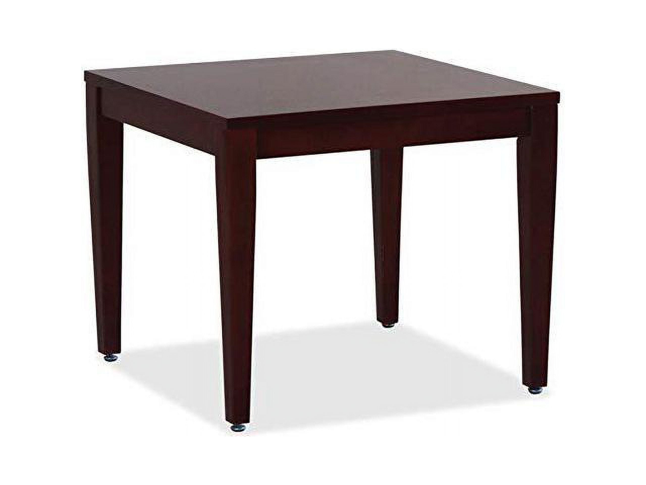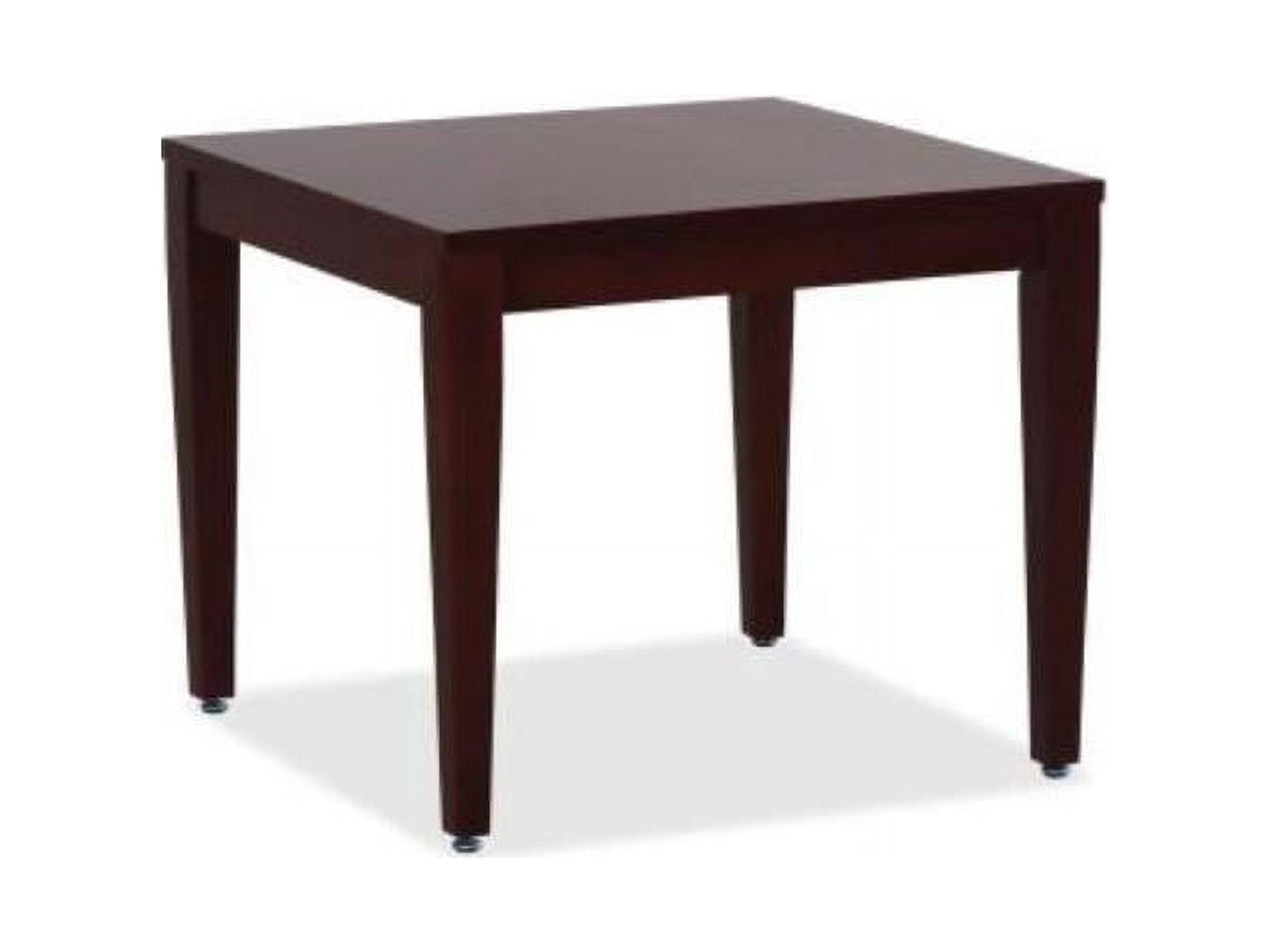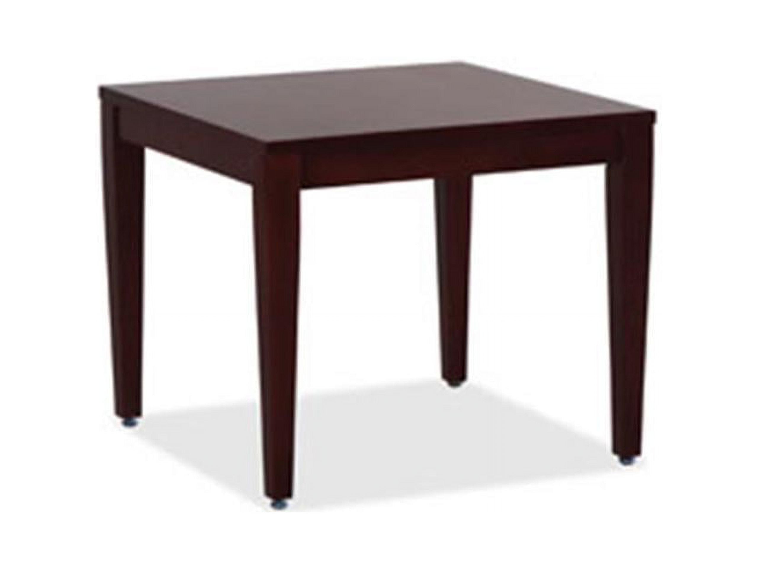 Accent your reception area with this traditional corner table. To impress your visitors, the solid wood frame is made of birch with a mahogany finish. Compact size makes it perfect to sit between chairs. Use the top surface to display business cards or magazines.