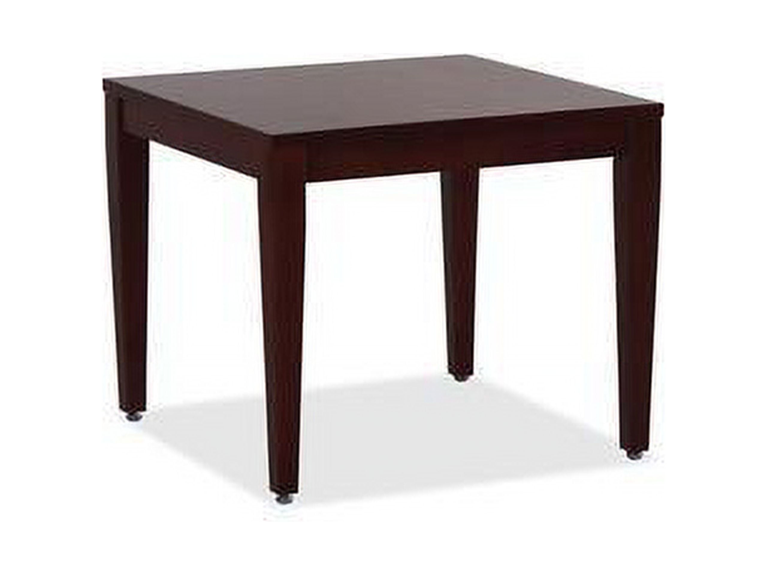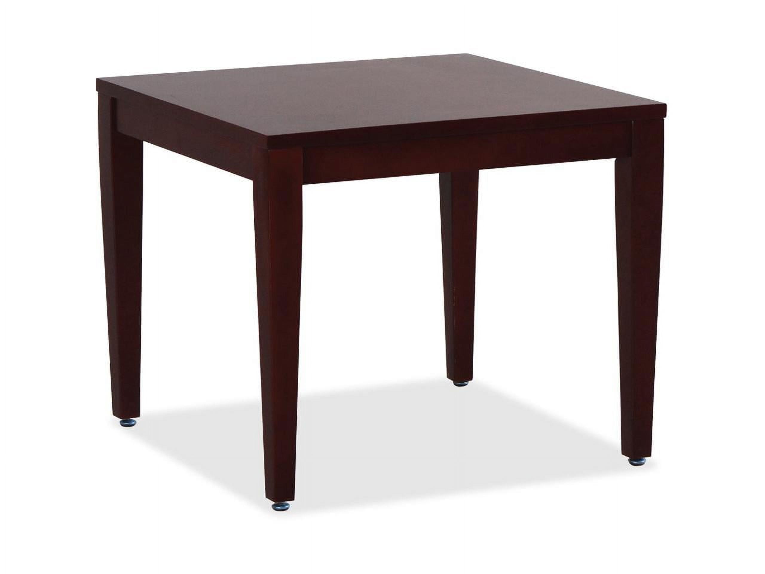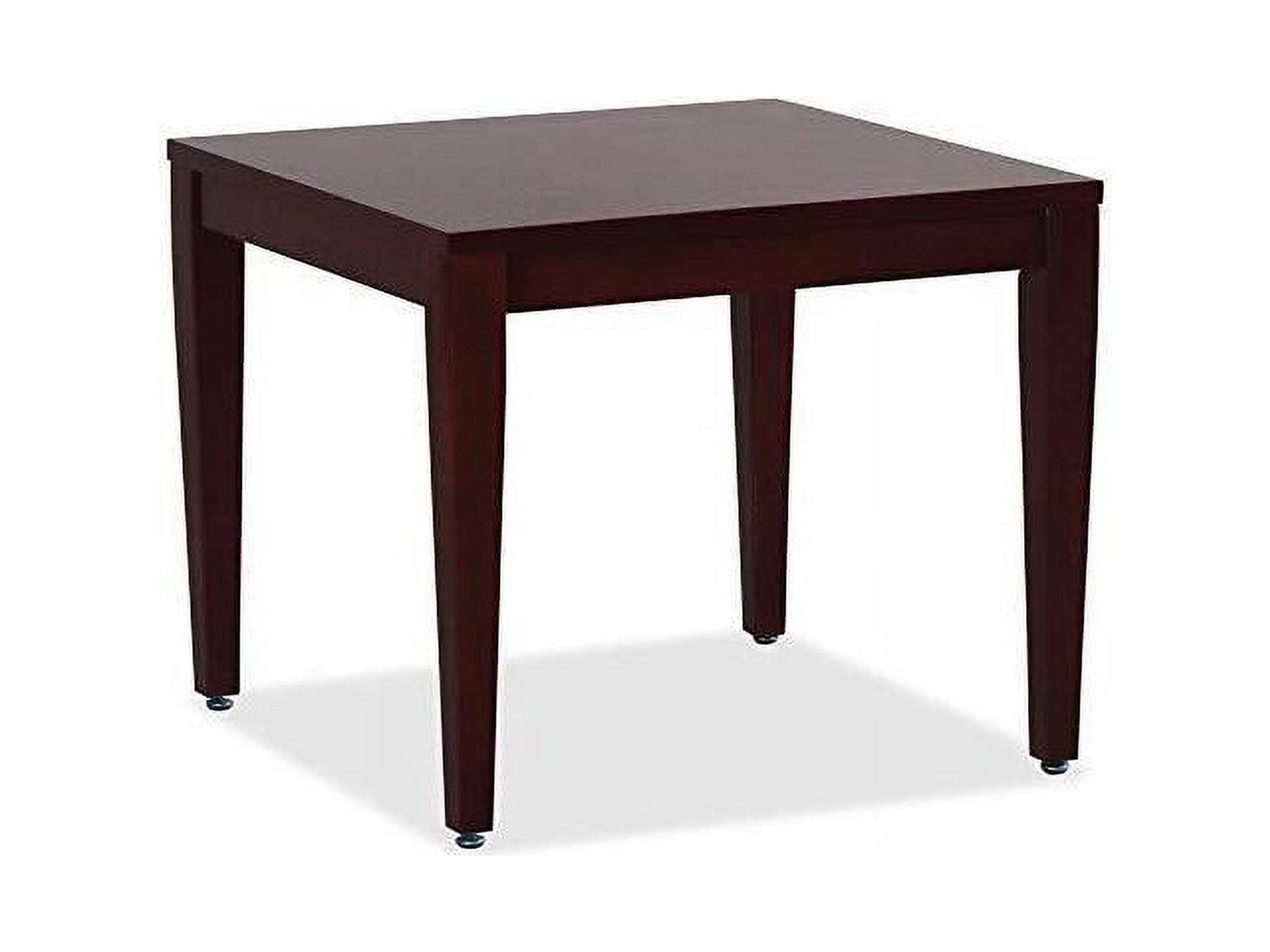 Accent your reception area with this traditional corner table. To impress your visitors, the solid wood frame is made of birch with a mahogany finish. Compact size makes it perfect to sit between chairs. Use the top surface to display business cards or magazines.