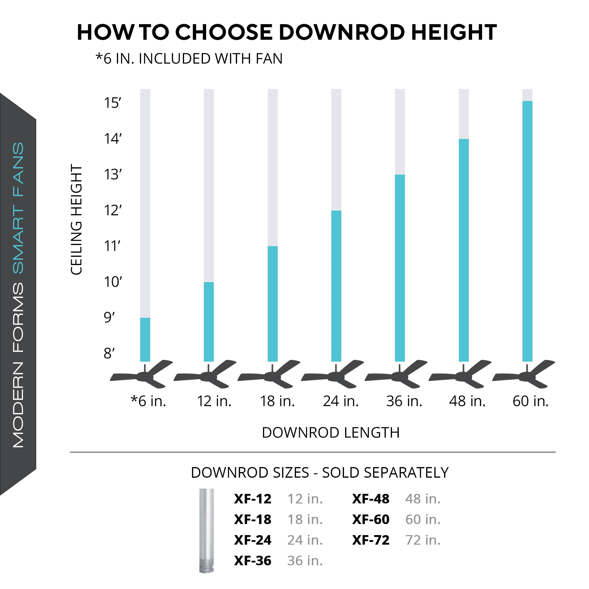 Modern Forms Fans pair with the smart home tech you know and love, including Google Assistant, Amazon Alexa, Samsung Smart Things, Ecobee, Control4, and Josh AI. Coming Soon: Savant, Lutron Homeworks, and Nest. Free app download: Sync with our exclusive Modern Forms app to control fan speed, use smart features like breeze mode, adaptive learning, create groups, and reduce energy costs. New: Bluetooth compatible for improved range and an unlimited amount of fans can be controlled with remote or wall control within range. Battery operated Bluetooth remote control with wall cradle included (Part No. F-RCBT-WT). Optional Bluetooth hardwired wall control sold separately (Part No. F-WCBT-WT) and can be set-up as 3 or 4 way switches when you purchase more than one. Can be controlled through an Android or iOS wall mounted tablet with Wi-fi. Modern Forms Fans are made with incredibly efficient and completely silent DC motors and are up to 70% more efficient than traditional fans. Every fan is factory-balanced and sound tested to ensure each fan will never wobble, rattle or click. Replaceable LED luminaire powered by WAC Lighting, features smooth and continuous brightness control. Available in 2700K, 3000K, and 3500K options, order accordingly. An optional cover is included to conceal luminaire. Standards: ETL, cETL, UL, cUL, CSA CAN Wet Location Listed for indoor or outdoor applications Can be installed on slope ceilings up to a 30 degree slope (XF-SCK Slope Ceiling Kit available for slopes 32-45 Degrees) Downrods sold separately for longer lengths, up to 72in in length