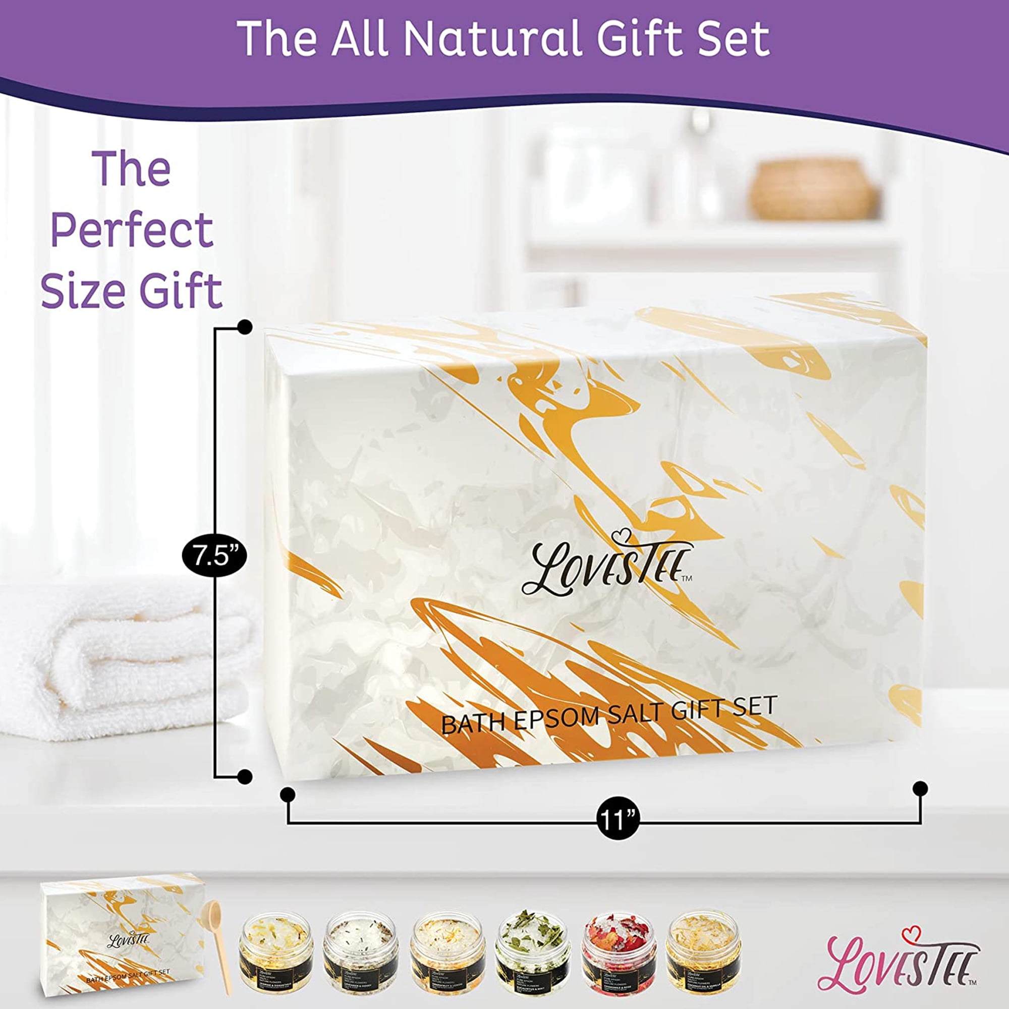 Lovestee 6-Scent Epsom Salt Bath and Body Spa Gift Basket Gift Set for Women