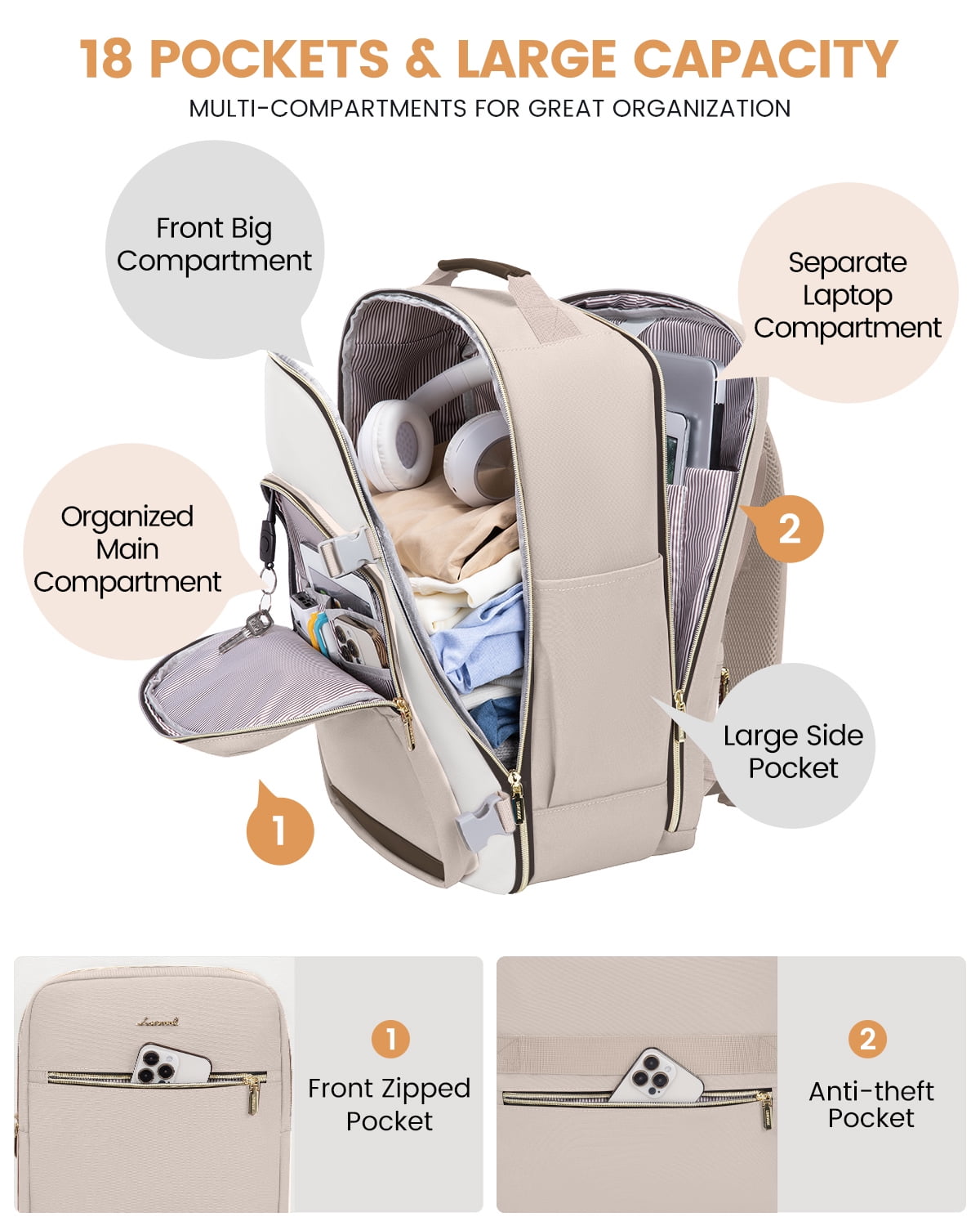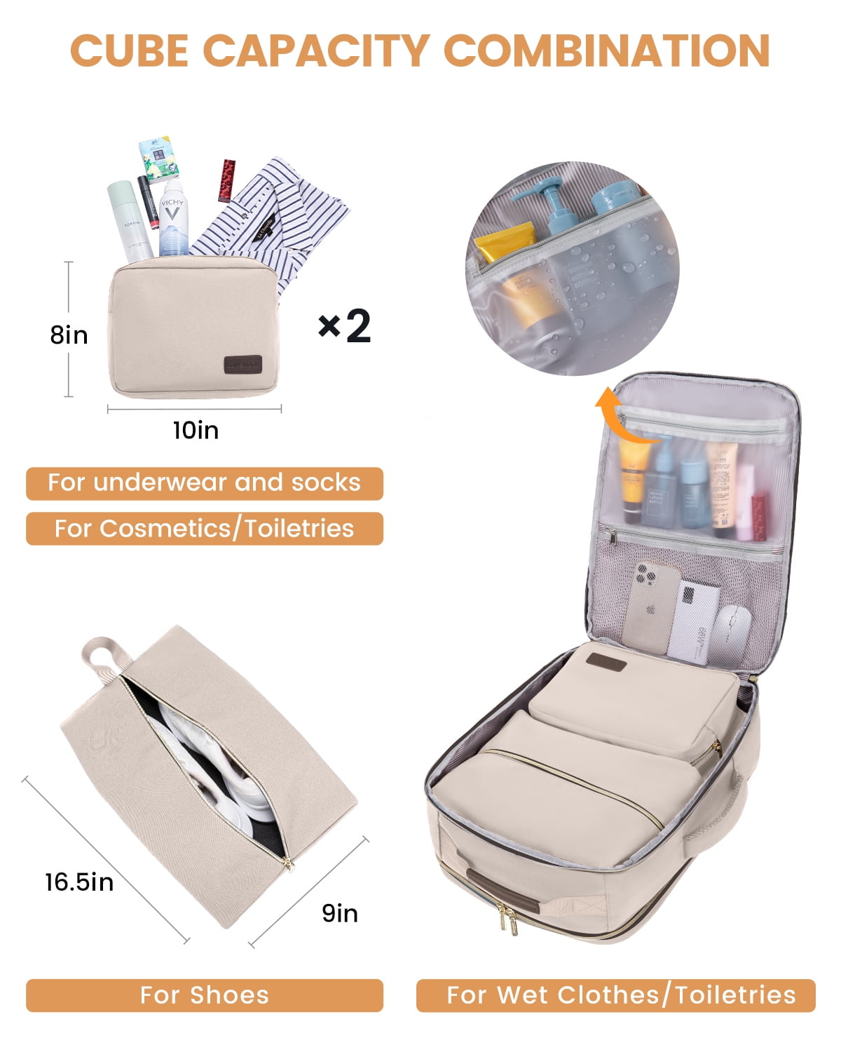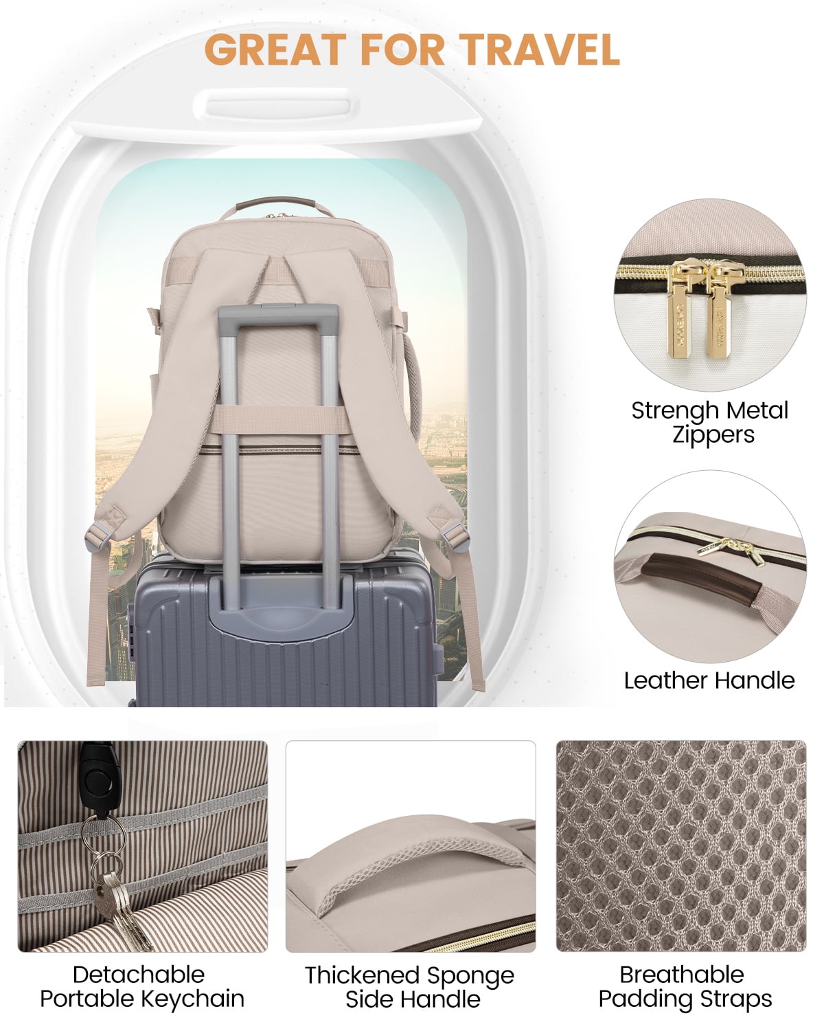 ✈Spacious & Organized Travel Backpack: With a 40L capacity equal to 20inch trolley case, 4 compartments &18pockets, designed to easily separate and organize your travel personal items, this travel backpack can accommodate 3-7 days worth of travel items ✈Versatile & Airline Approved Carry-on Luggage Backpack: This this carry-on backpack can be take as personal item bag directly into airplane, fits under the seat or in the overhead compartment, making it the perfect personal item for air travel ✈Practical 3 Extra Packing Cubes: 3 extra storage bags as well as a built-in wet compartment pocket, Perfect for storing shoes cosmetics toiletries towels underwear socks……these packing accessories ensure your belongings remain dry and prevent any leaks or moisture from affecting your other items ✈180° Opening Laptop compartment for Friendly TSA: Design separate laptop compartment padded with thick sponge and fix by a shock-resistant strap preventing from sliding and bumping, Fit up to 17.3 inch laptop,180° opening mouth for fast security inspection in Airport ✈Ideal Gift for Travel Enthusiasts: Surprise your loved ones or yourself with this highly functional+sturdy strap+stylish travel backpack, wonderful versatile companion as a travel backpack carry-on luggage backpack or personal item bag, would be a perfect gift for men and women, wife, girlfriend, mother, daughter, and friends in birthdays, Thanksgiving, Christmas, New Year, and Valentine’s Day