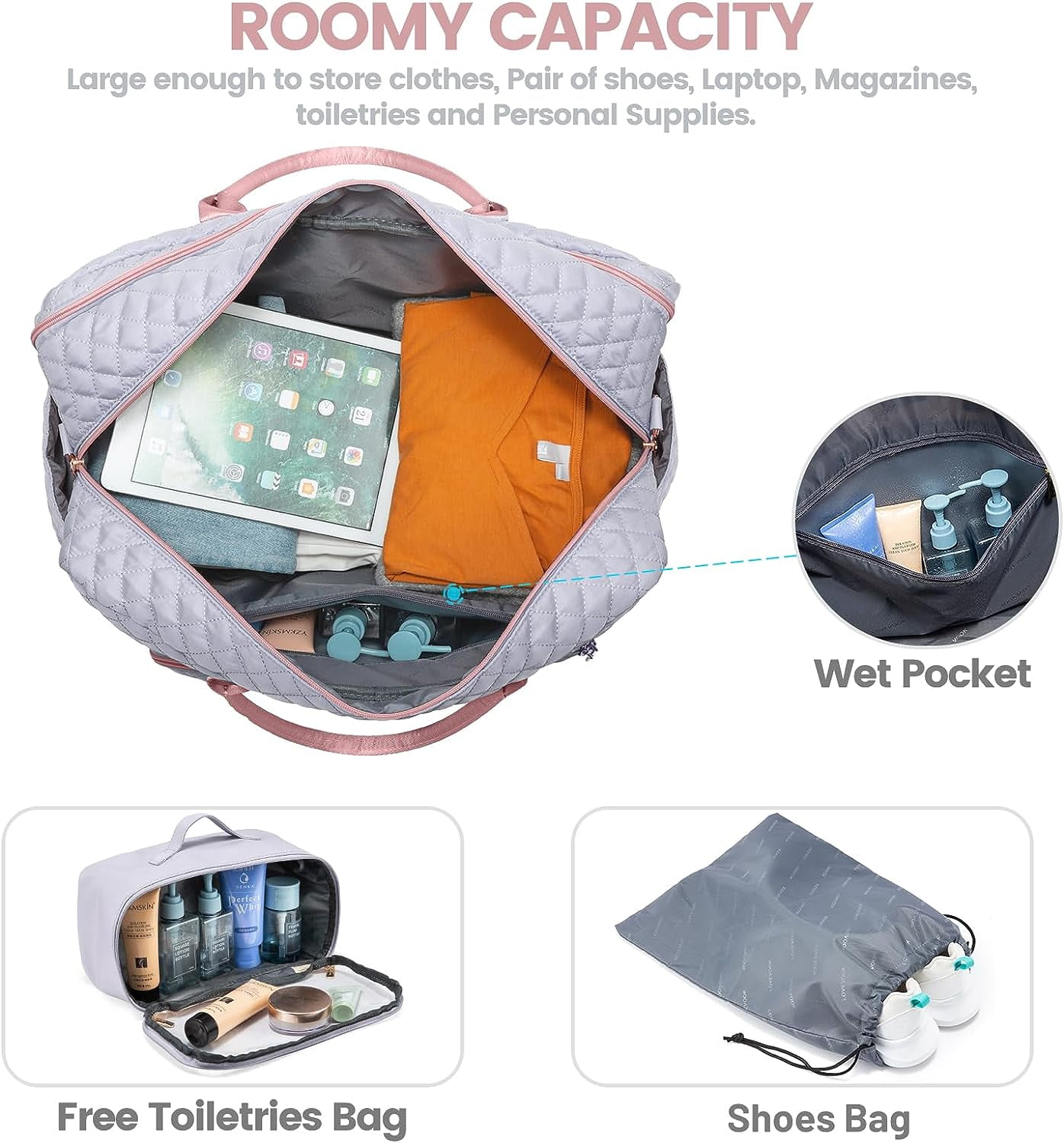 Lovevook Travel Duffle Bag,Carry-on Weekender Bag for Women with Separate Laptop Compartment,Yoga Gym Bag Hospital Overnight Bag with Dry/Wet Pocket Seperate Shoe Bag & Toiletry Bag