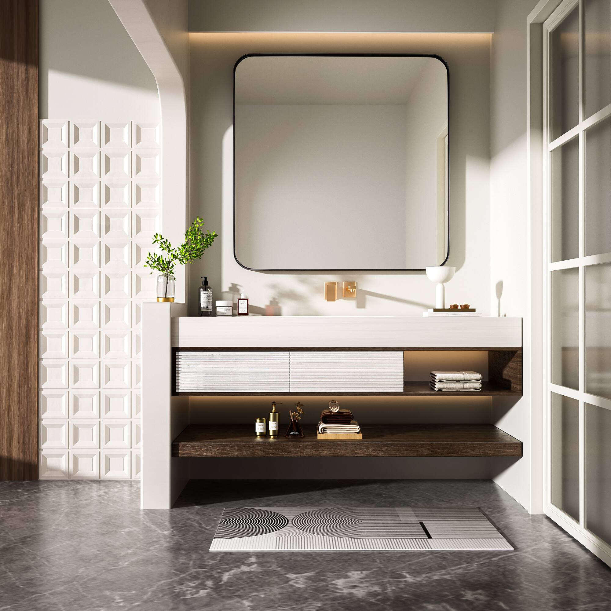 - Product Name: Tempered Glass Rounded Rectangle Framed Wall-Mounted Bathroom Vanity Mirror – 36″ x 36″