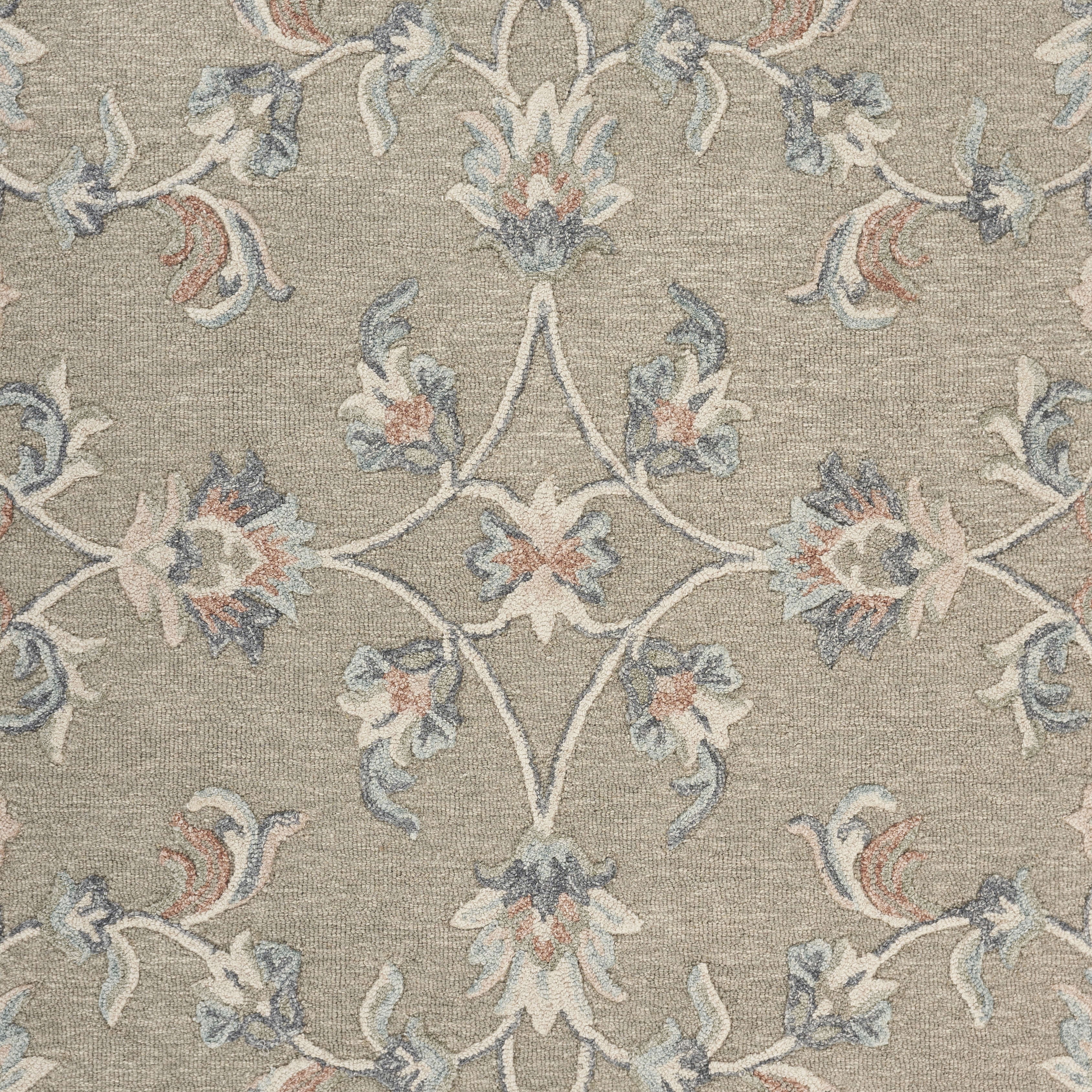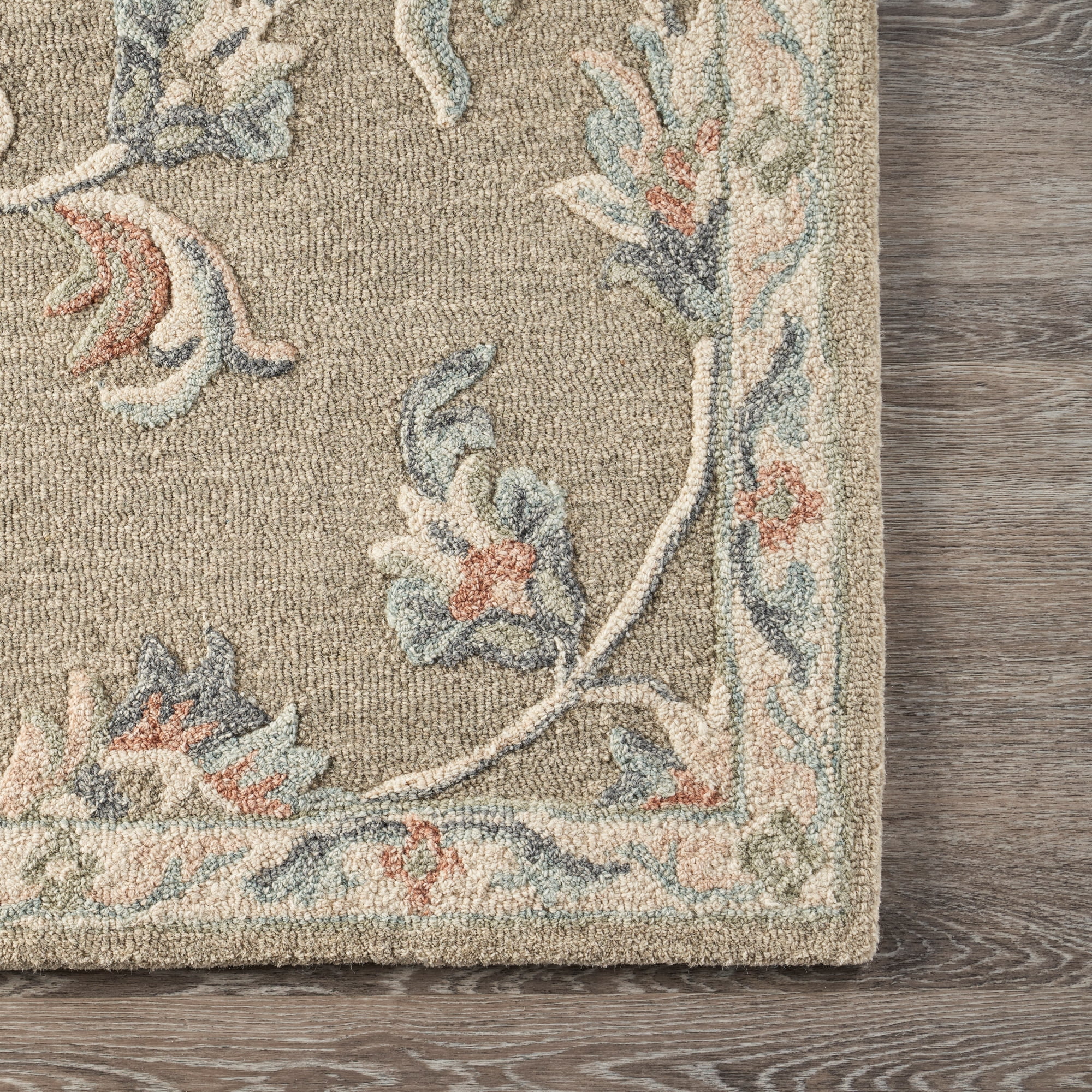 LR Home Aiden 7′ x 9′ Silver/Cream Floral Wool Indoor Area Rug