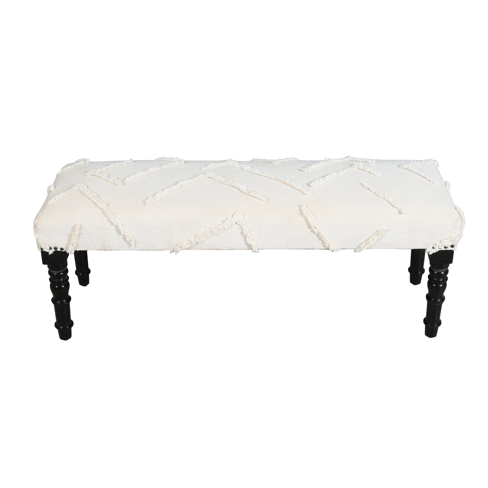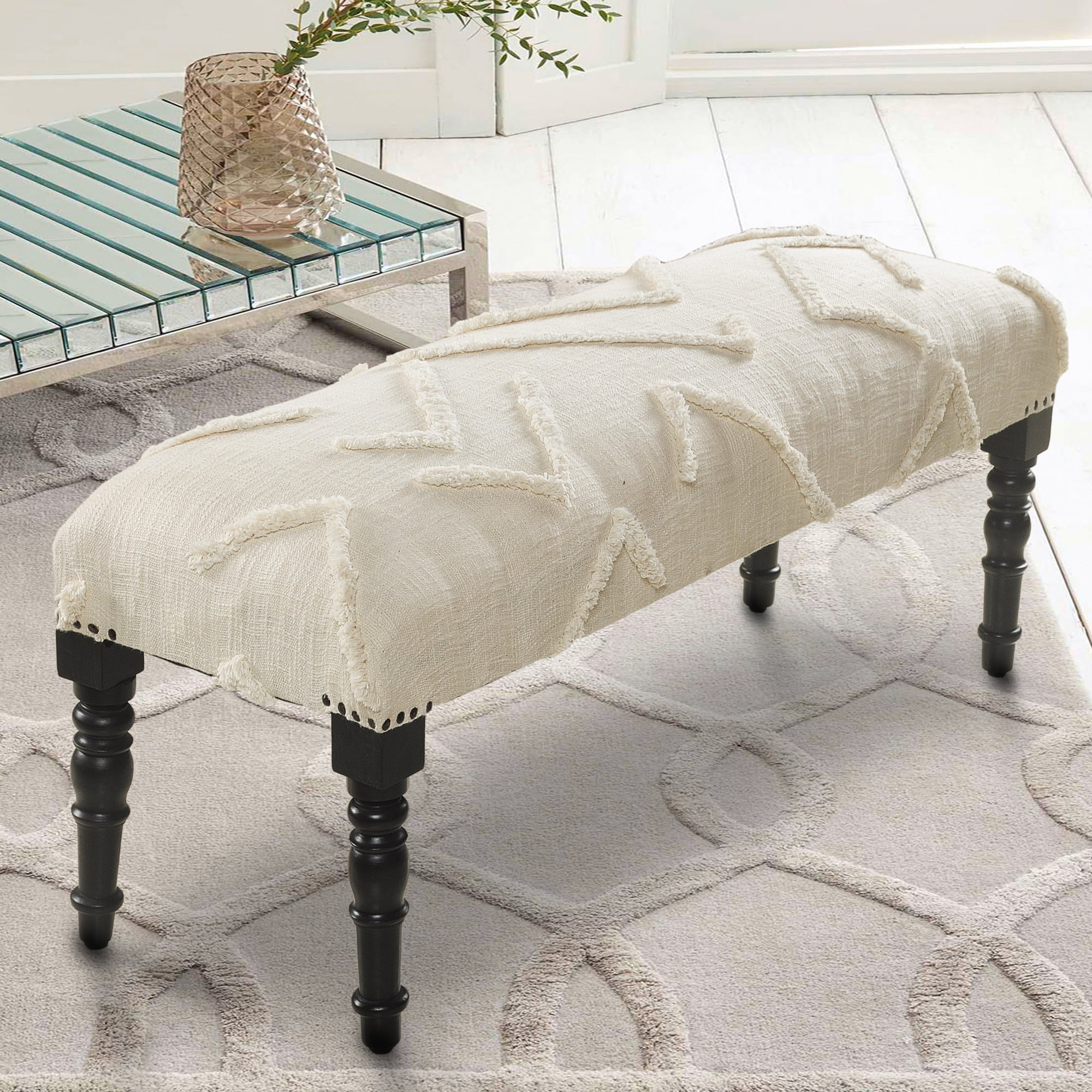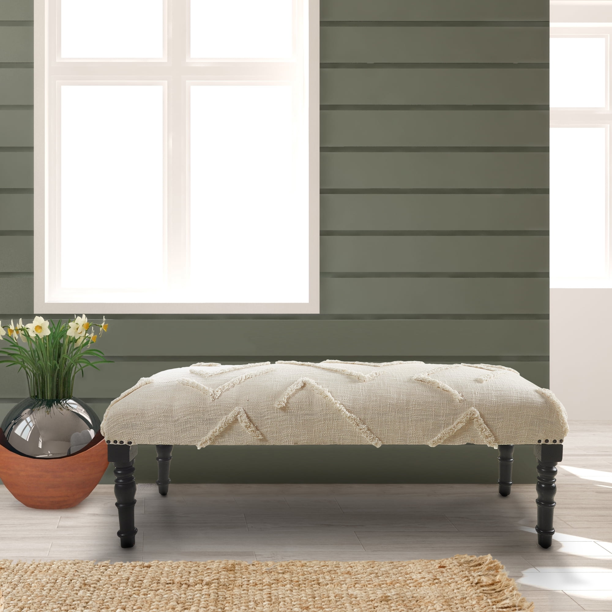 LR Home Analia 47″ Upholstered Accent Bench, Off-White Shag