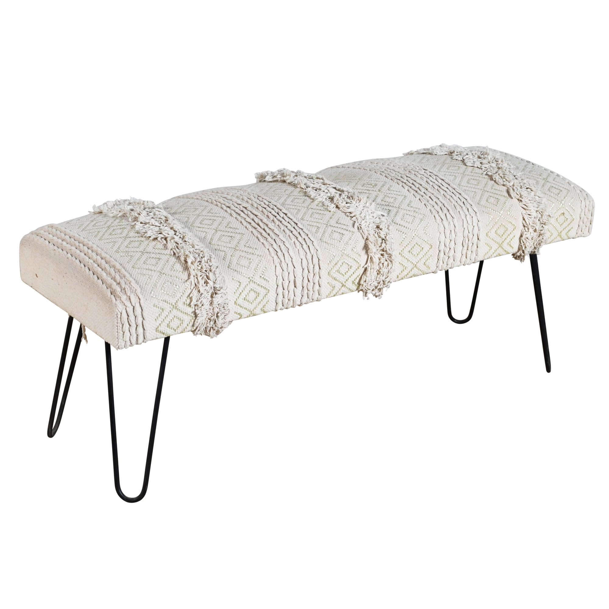 Handmade by highly skilled artisans in India with great care and attention to detail 100% Cotton upholstery with iron legs for stability and comfort Easy Assembly: Simply screw legs into upholstered bench top Dimensions: 16″ (D) x 18″ (H) x 47″ (W) Complements a variety of décor including contemporary, global, boho, and glam PLEASE NOTE: Digital images and colors may vary due to differences in computer monitors and mobile phones. Measurements are approximate and patterns may vary slightly according to shape and size selected.