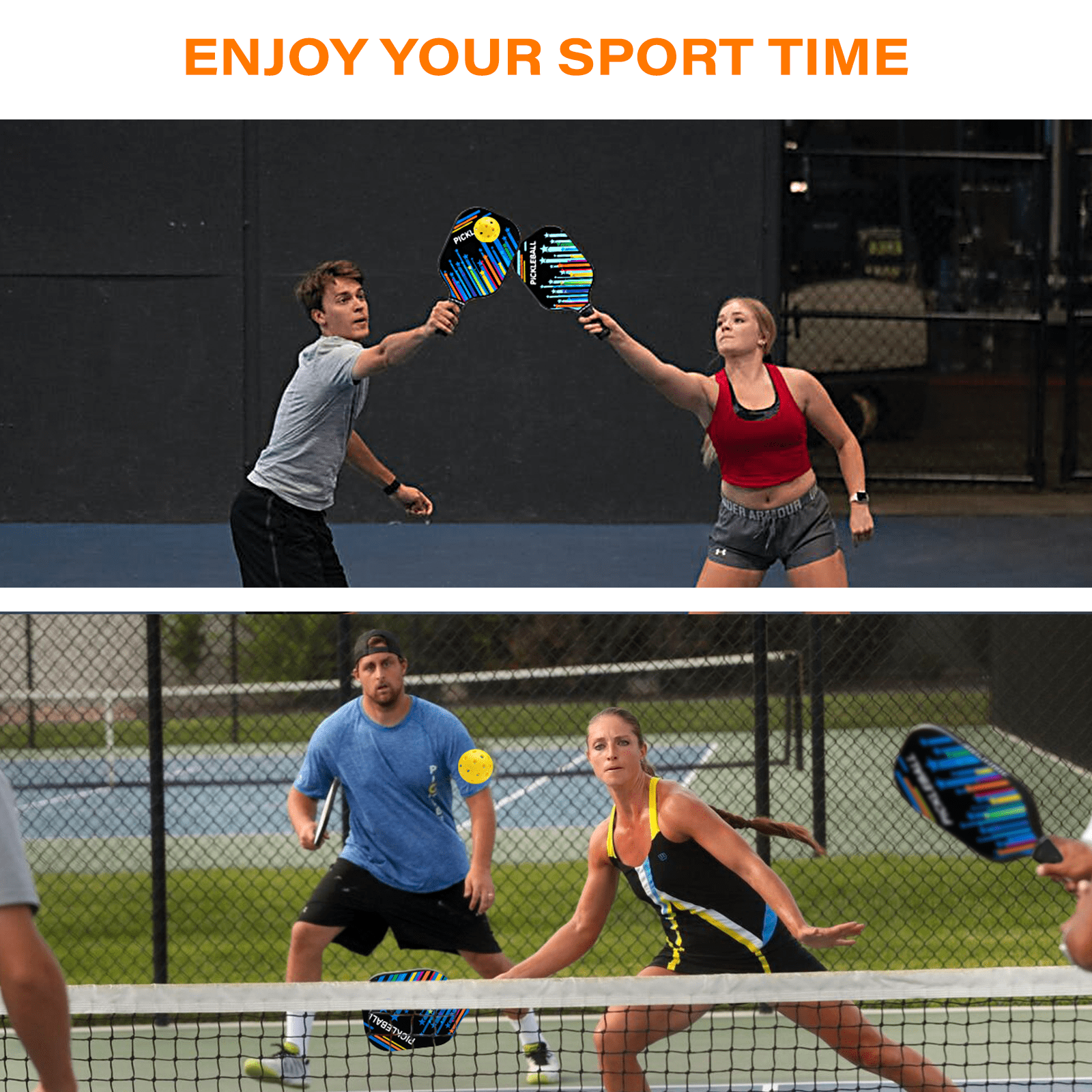 PICKLEBALL SET FOR BEGINNERS! –If you’re looking for a pickleball set to start playing this fun sport, we highly recommend this. We’ve designed our LSTECICE pickleball paddles for the perfect balance of power and control. This set has everything you need to get started – 4 glassfiber pickleball racquets, 2 indoor balls, 2 outdoor balls, and a durable black carrying case with an adjustable shoulder strap and handle. Age group: adult, teen Product Net Content Quantity–4 pickleball rackets+4 balls+1 black carry bag ENJOY HOURS OF FUN ON THE COURT –Whether it’s doubles, singles, or skinny singles, you’ll enjoy hours of sporting fun! Our pickleball paddles feature a wide surface sweet spot to provide better accuracy and impact with every shot! Get ready to enhance your game and reduce fatigue. You’ll feel limitless as you dash, spin, and ace the shot. EXTREMELY LIGHTWEIGHT AND EASY TO CONTROL –Now you can get a great workout with less stress on your shoulders, elbows, and wrists! Our cutting-edge racket surface is made with advanced carbon fiber and honeycomb cell technology. Our pickleball racquet weighs just 7.9oz with the ideal weight distribution for more control and power to hit the ball hard, volley, and make the dink shot for the win. ERGONOMIC AND LONGER HANDLE WITH A BETTER GRIP –The secret to better game play is in the handle! These easy-to-hold pickleball paddles for women and men have a comfortable 4.25” circumference for a comfortable grip. You’ll love the feel of the soft anti-slip cushioned grip that absorbs sweat. The slightly longer handle makes two-handed backhand moves and quick hand switches a breeze. THE QUIETEST PADDLES ON THE MARKET – GUARANTEED! –You asked for a quiet pickle ball paddle design, and we delivered! Our graphite pickleball paddles are constructed of polymer honeycomb core cells sandwiched in sheets of carbon fiber to maximize noise elimination and vibration. This design also results in exceptional strength and longevity of your pickle ball racket. Get yours today with total confidence.