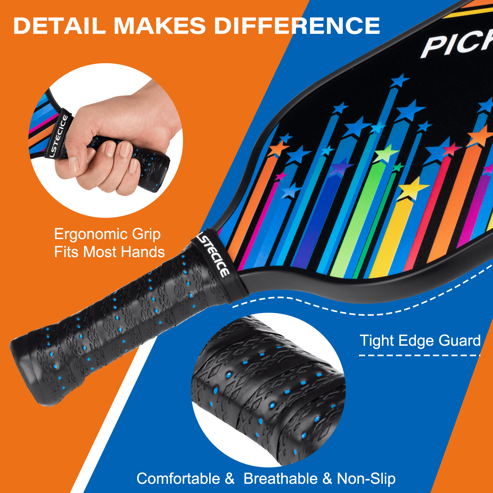 LSTECICE Pickleball Paddle Glassfiber 7.9oz Pickle Set of 4 Paddles, 4 Balls, with Black Bag