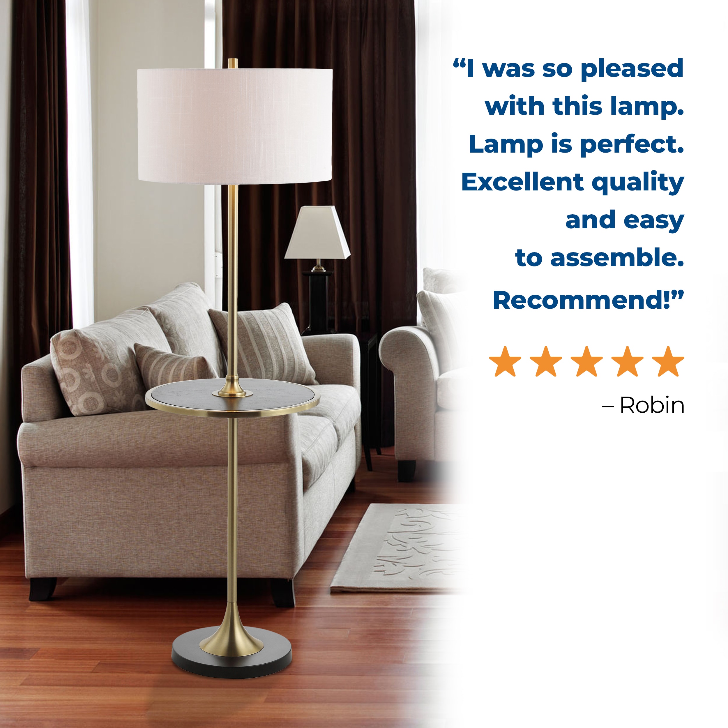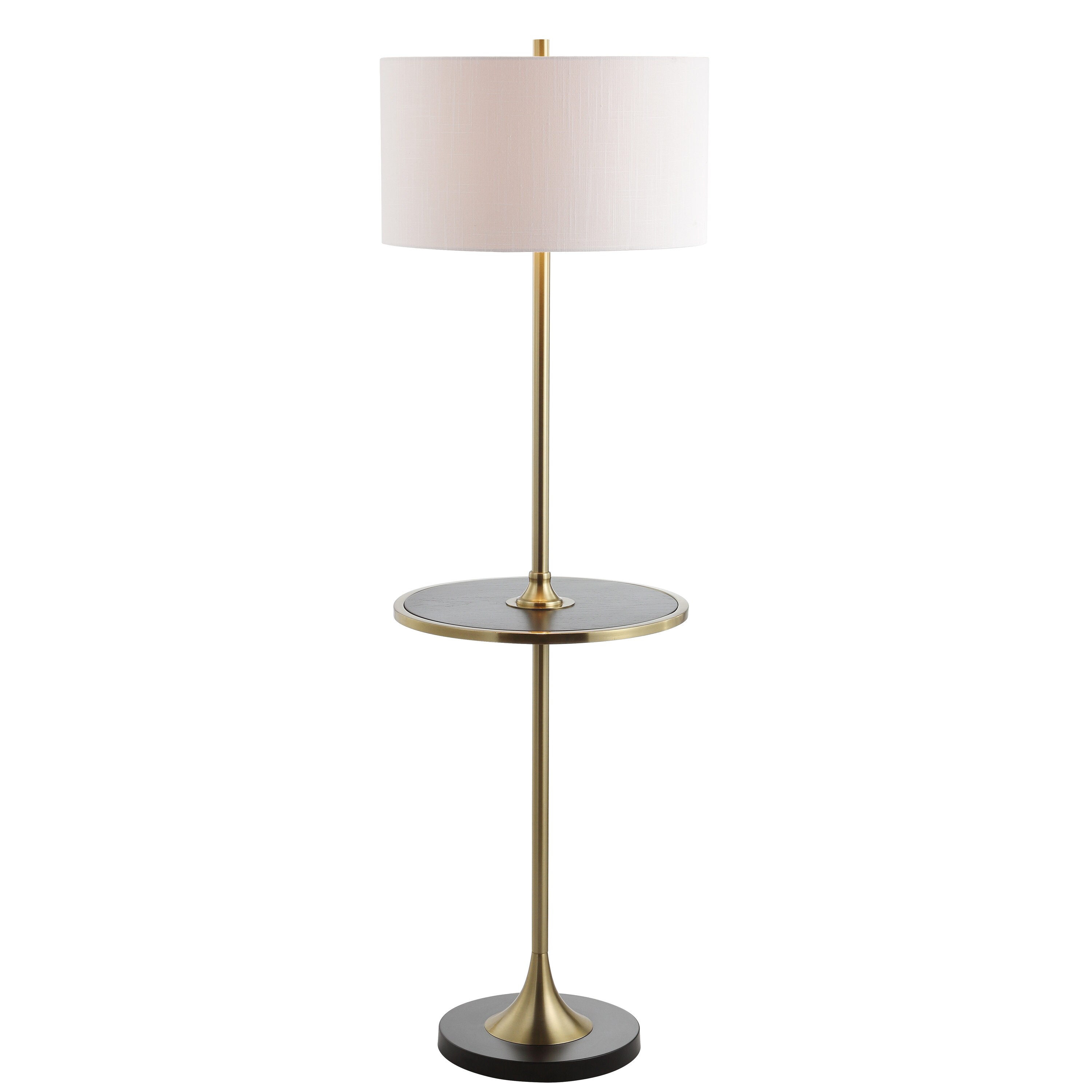 Luce Metal/Wood Transitional 59-in Black/Brass Gold Shelf Floor Lamp with Linen Shade